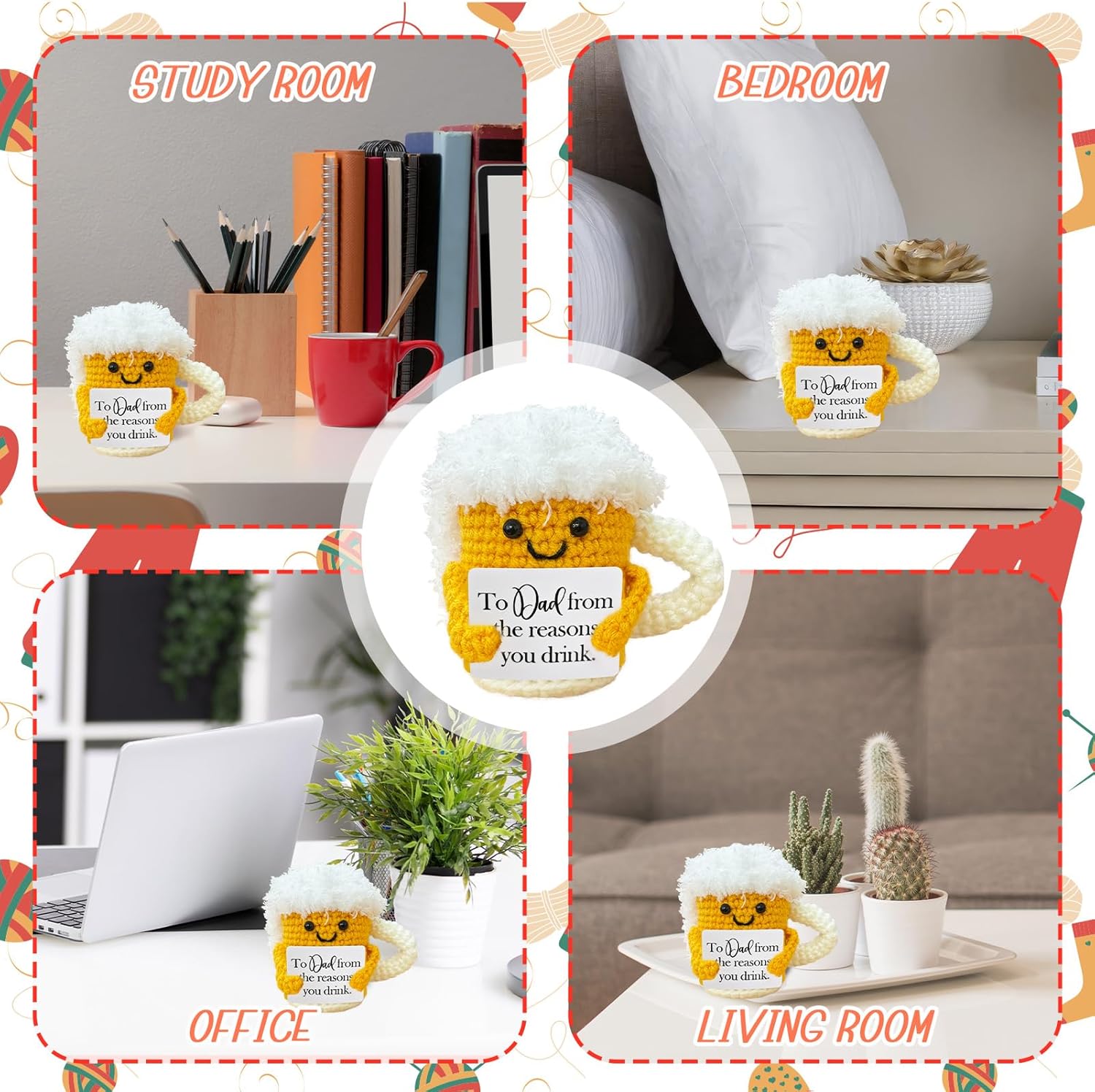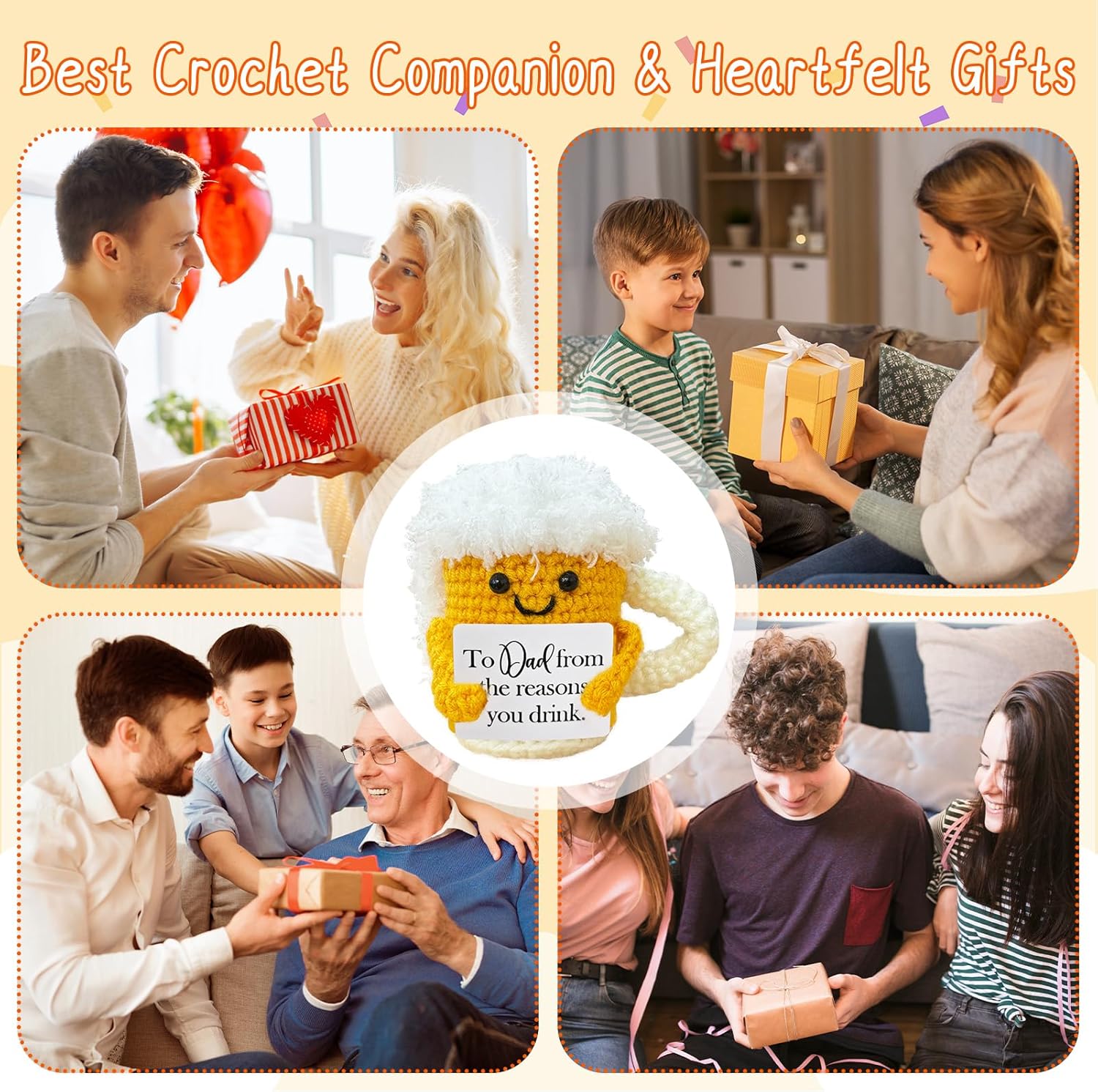 Emotional Support Crochet Beer,Drinker Gift for Men,Dad Ideals Gifts,Funny Stuff,Cute Crochet Beer Home Decor for Housewarming Gift,Friendship Gifts,Christmas Stocking Stuffers