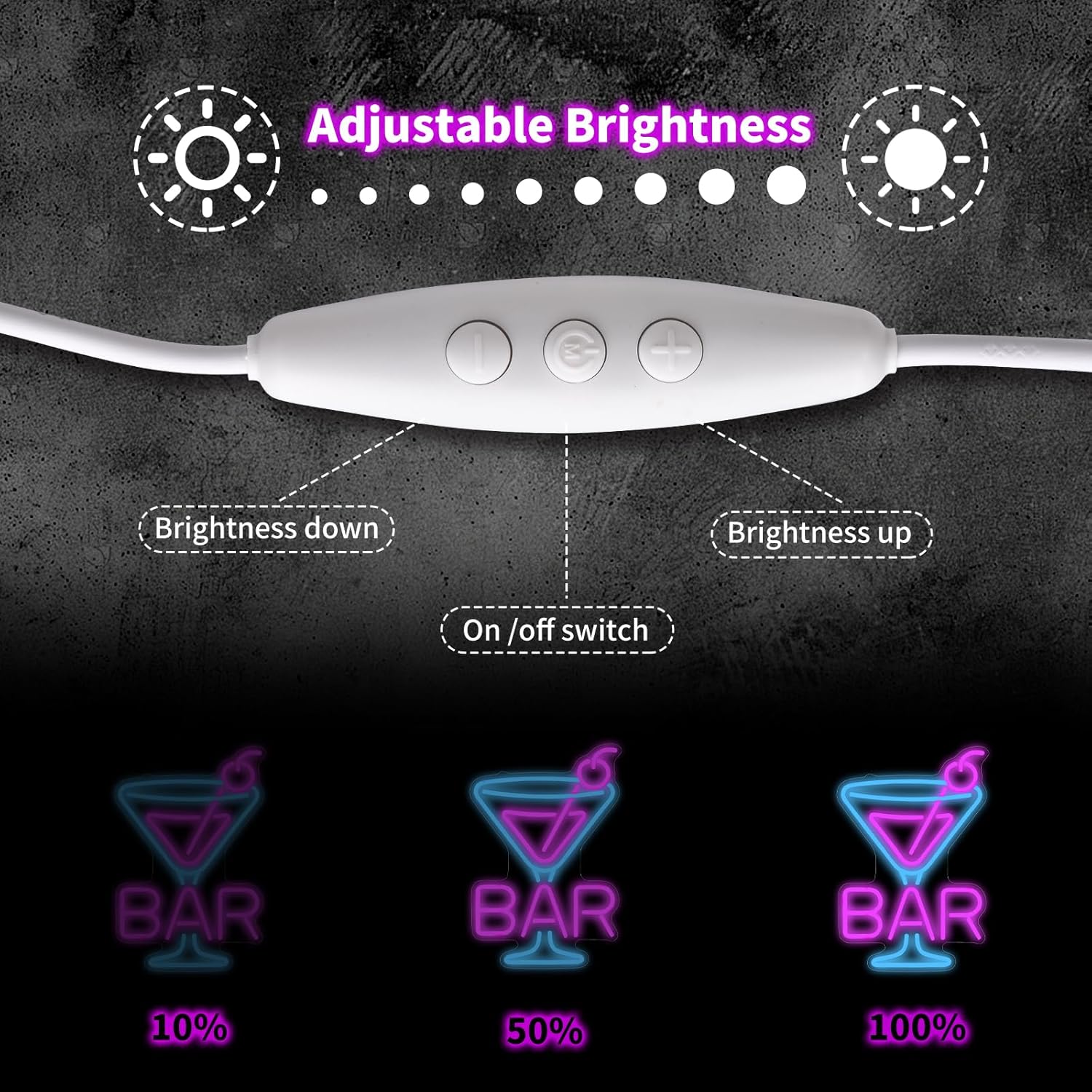 - 4️⃣ 💡 Adjustable Brightness 10%-100% smooth dimming - Set your perfect glow level from soft ambiance to full party brightness.
