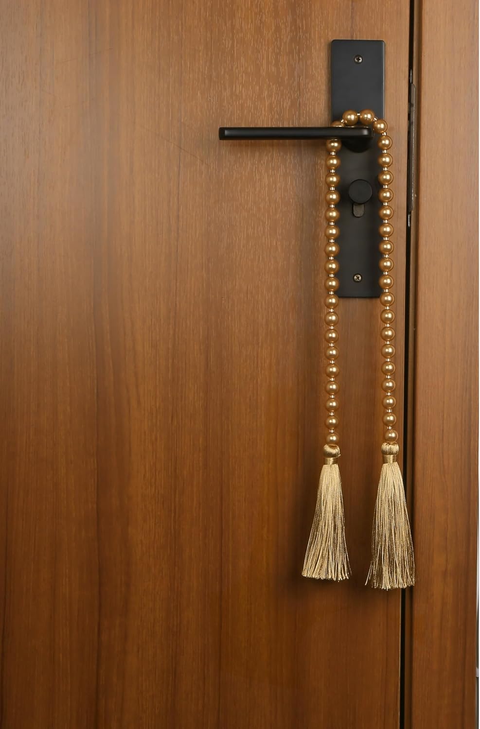 Fenghuangwu 34 Inch Pearl Glass Bead Garland with Tassels - Elegant Boho Table Decor, Fringe Wall Hanging for Wedding, Party, Farmhouse Rustic Prayer Bead Home Decoration(1 Pack,Gold)