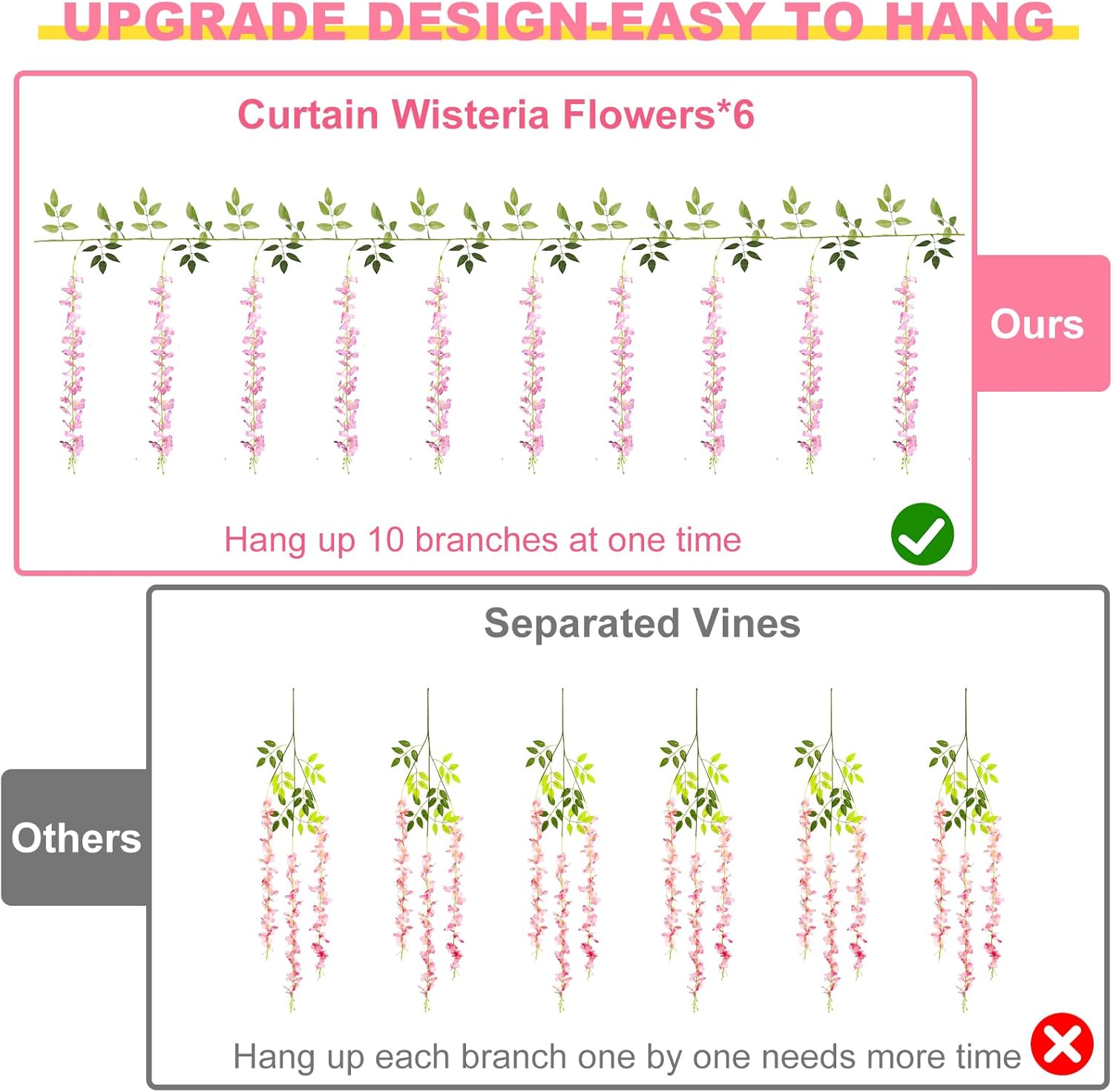 - Warm Prompt:Because these wisteria flowers are multi-count hanging flower strips, there will be a little winding, which is a normal phenomenon. Please untie it carefully. It is normal for some petals to fall. Please understand.