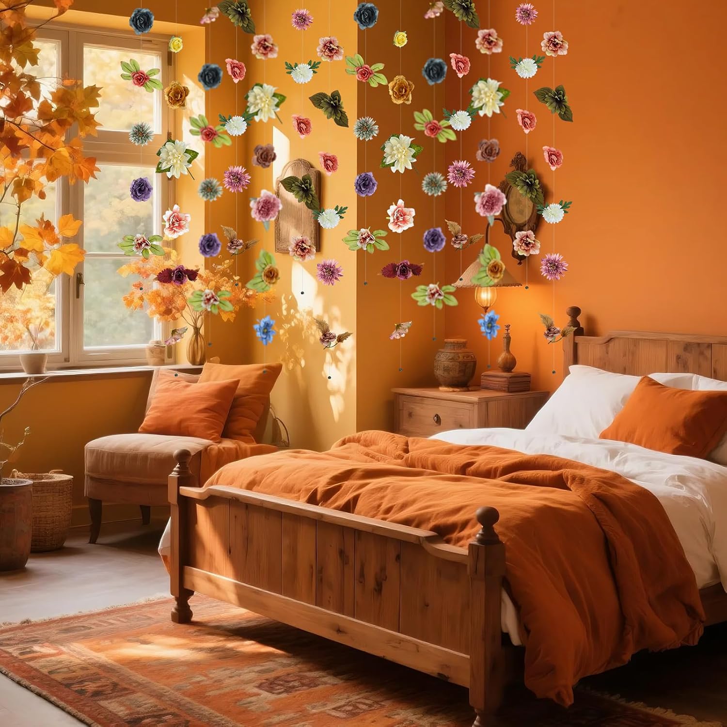 - Generous Size: each artificial wildflower garland measures about 5.9 ft /1.8 m with transparent silk thread, providing ample coverage for various decorative needs; Whether draped across mantels, twisted around banisters, or hung as backdrops