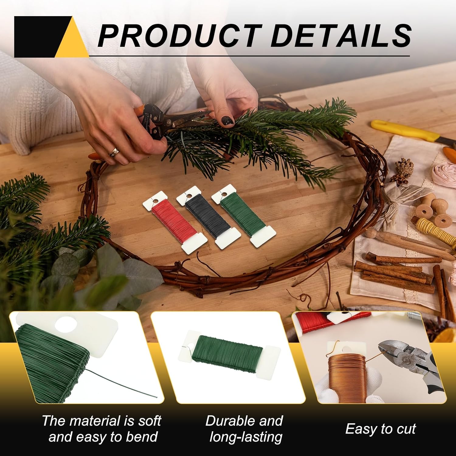 - This floral wire is suitable for various holiday decorations, such as making Christmas wreaths, hanging Christmas ornaments, and tying bouquets to help you secure the position of fresh flowers and prevent them from scattering. It can also be used to create exquisite potted plant art, bows, crafts, and more.