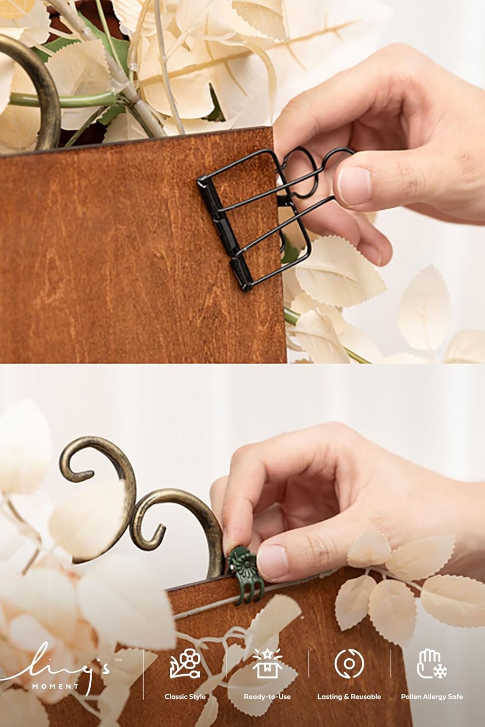 - EASY TO USE: Fasten the wedding seating chart swag to the edge of the easel stand for sign with clips, which won't damage fabrics and flowers and is easy to remove off. Comes with four small claw clips that can be used to clamp the leaf vine branches on the stand, like a vine growing on an easel.