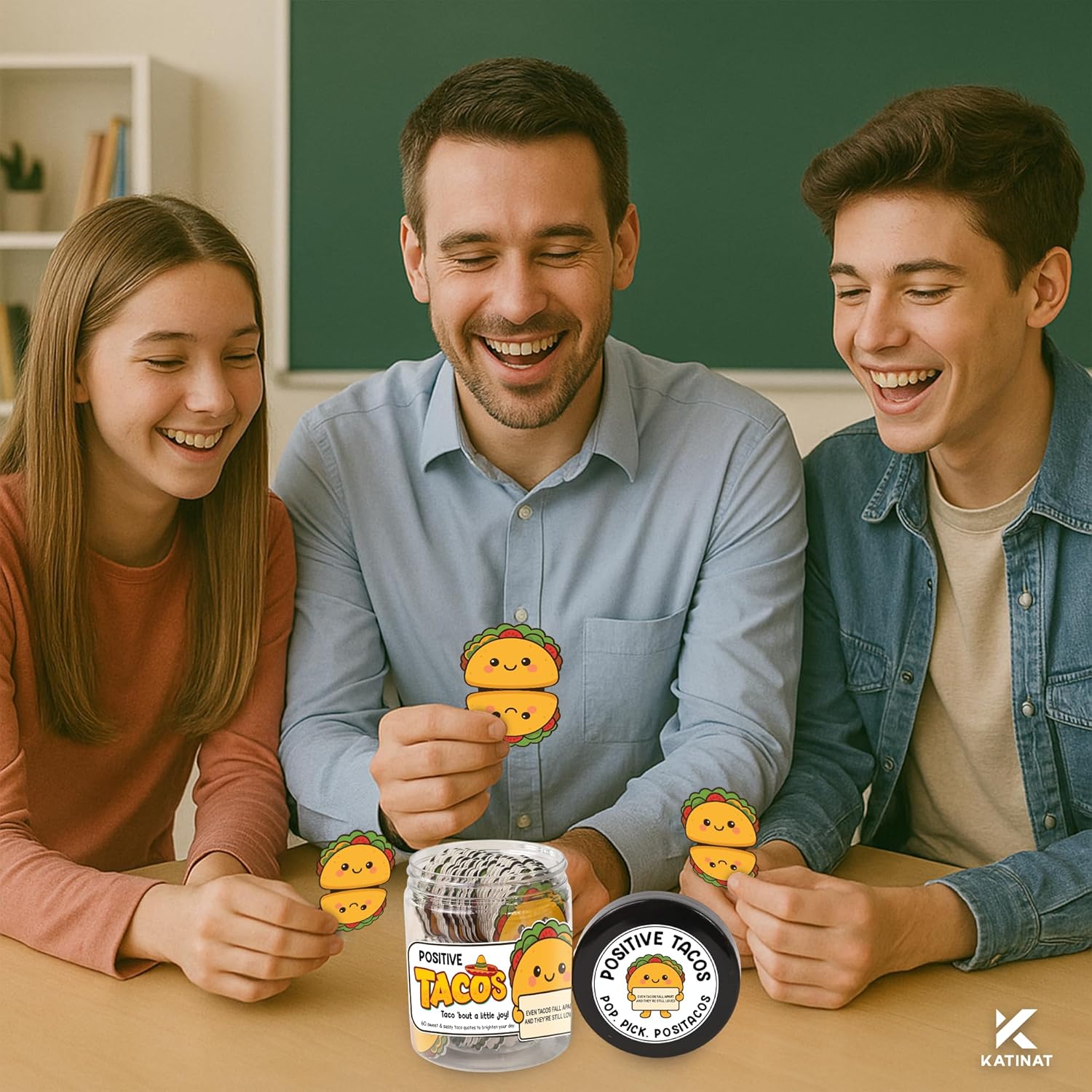 Positive Taco Jar – 60 Funny Emotional Support Taco, Back to School Gift for Students, Teachers, White Elephant Gifts For Women, Men, Corworker, Mental Health Gift, Birthday Gifts for Women