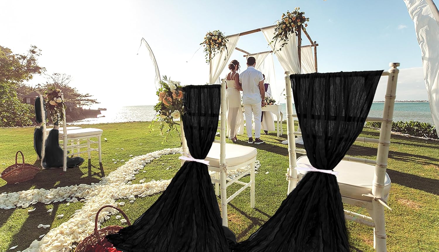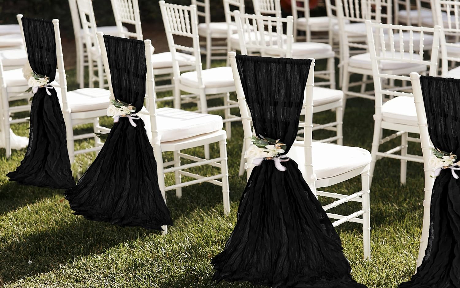 - 【Delicate Craftsmanship】Black cheesecloth chair sashes adopt unique pleated workmanship, and the overall appearance is simple and elegant, creating an elegant and romantic atmosphere easily. The edges are carefully stitched to keep a perfect flowing condition, will not get broken or loose easily, can serve you for a long time
