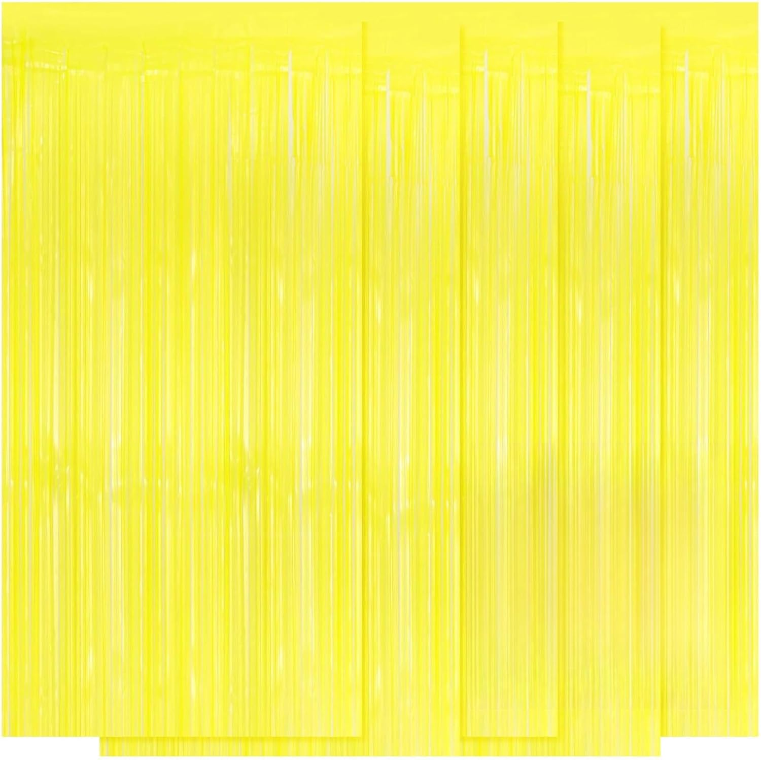 5 Pack Yellow Foil Curtain Backdrop 3.2ft x 8.2ft Tinsel Foil Fringe Curtains Macaron Photo Booth Streamer Backdrop for Party Decorations Birthday Baby Shower Bachelorette Holiday Decor (Yellow)