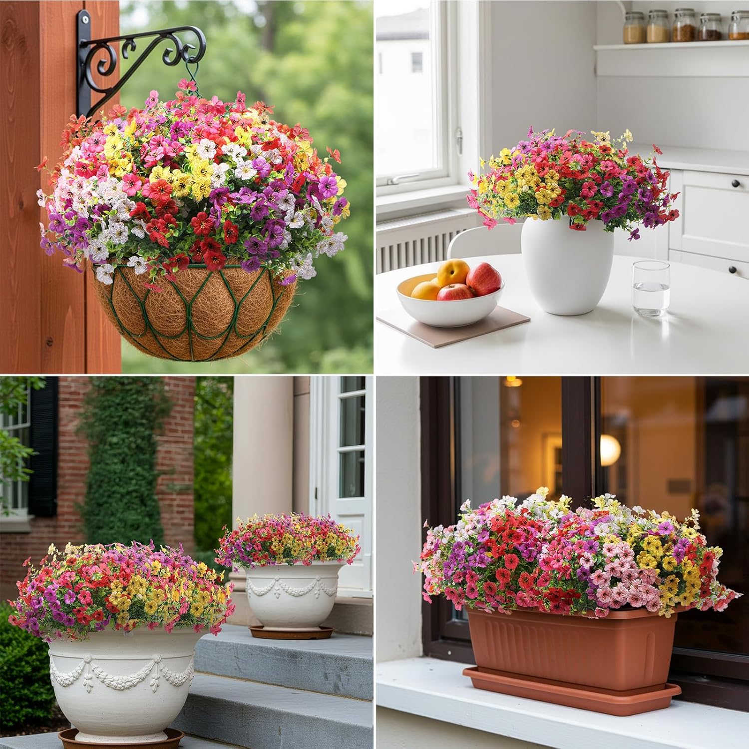 - Realistic Faux Flower Bouquets: The colorful fake flowers with realistic textures and flexible stems are very close to real flowers. Ideal decoration for garden, front doors, window, pots, etc.