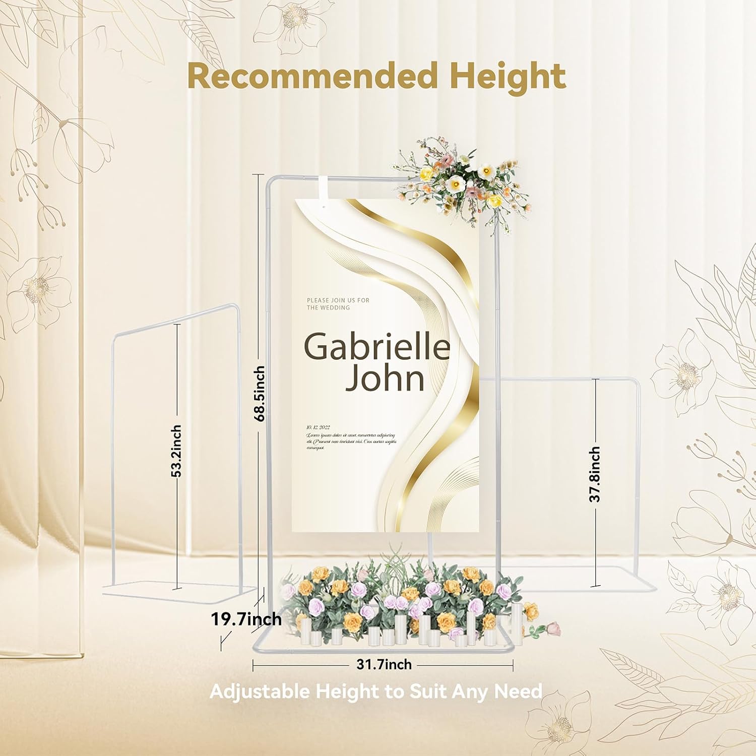 - Style Your Wedding & Make It the Cherry on Top of Memories: With its glossy metallic finish that complements any theme and decor, this wedding welcome sign stand elegantly accentuates your wedding. Sleek and contemporary, this adjustable wedding sign holder creates the perfect photo background for your guests
