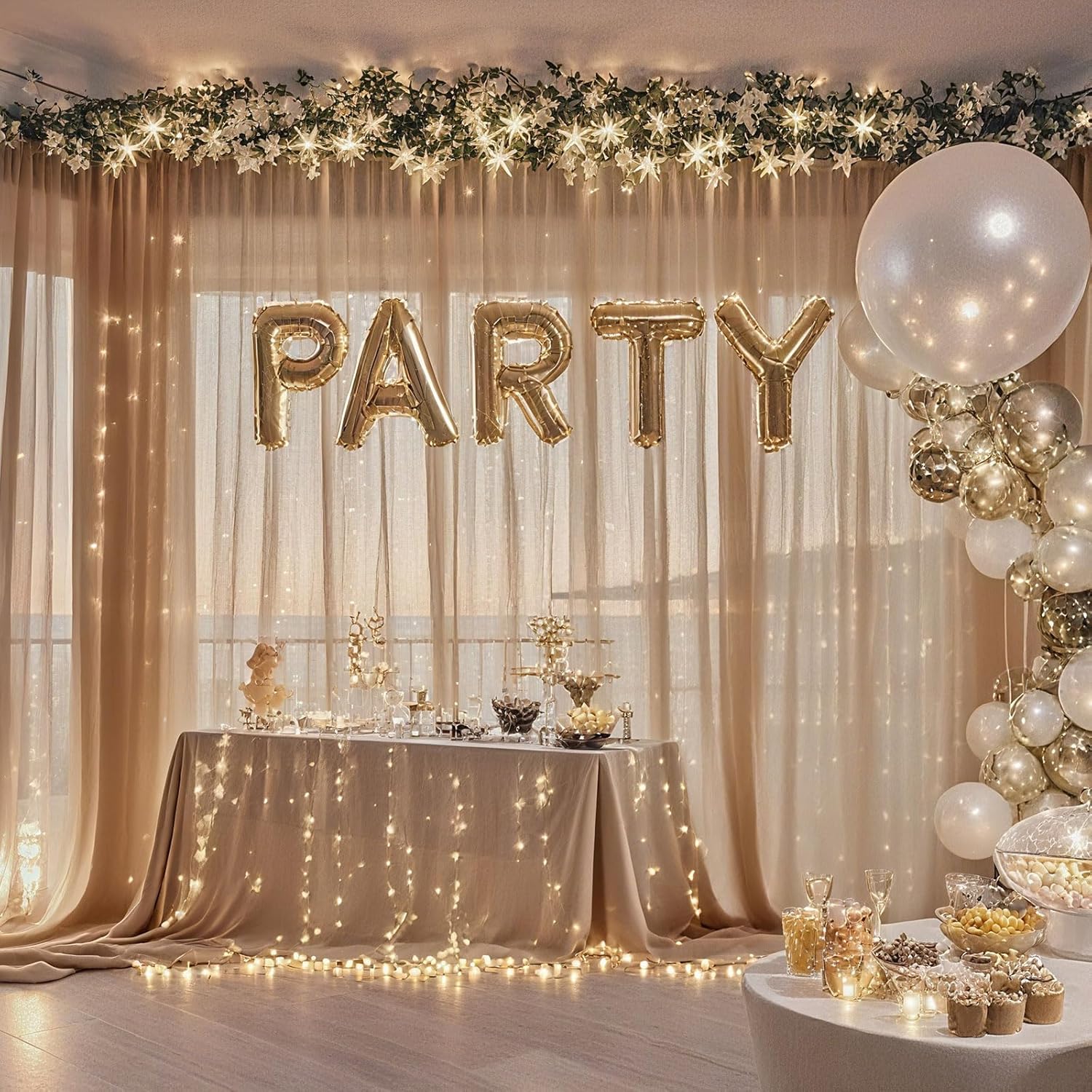 - 【ONE for ALL Curtain Backdrop】This illuminated background is perfect for photography, graduation ceremonies, weddings, birthdays, Baby showers, receptions, room decorations, candy buffets, dessert table background walls, Christmas window decorations or any place you want. Whether placed indoors or outdoors, it is the best background for party guests to take photos. PS: Multi-layer curtains can create a more full appearance and enhance the visual impact.