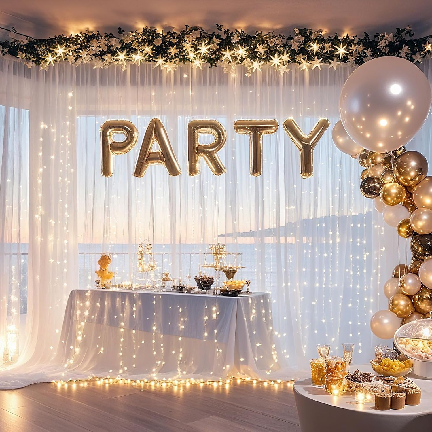 - 【ONE for ALL Curtain Backdrop】This illuminated background is perfect for photography, graduation ceremonies, weddings, birthdays, Baby showers, receptions, room decorations, candy buffets, dessert table background walls, Christmas window decorations or any place you want. Whether placed indoors or outdoors, it is the best background for party guests to take photos. PS: Multi-layer curtains can create a more full appearance and enhance the visual impact.