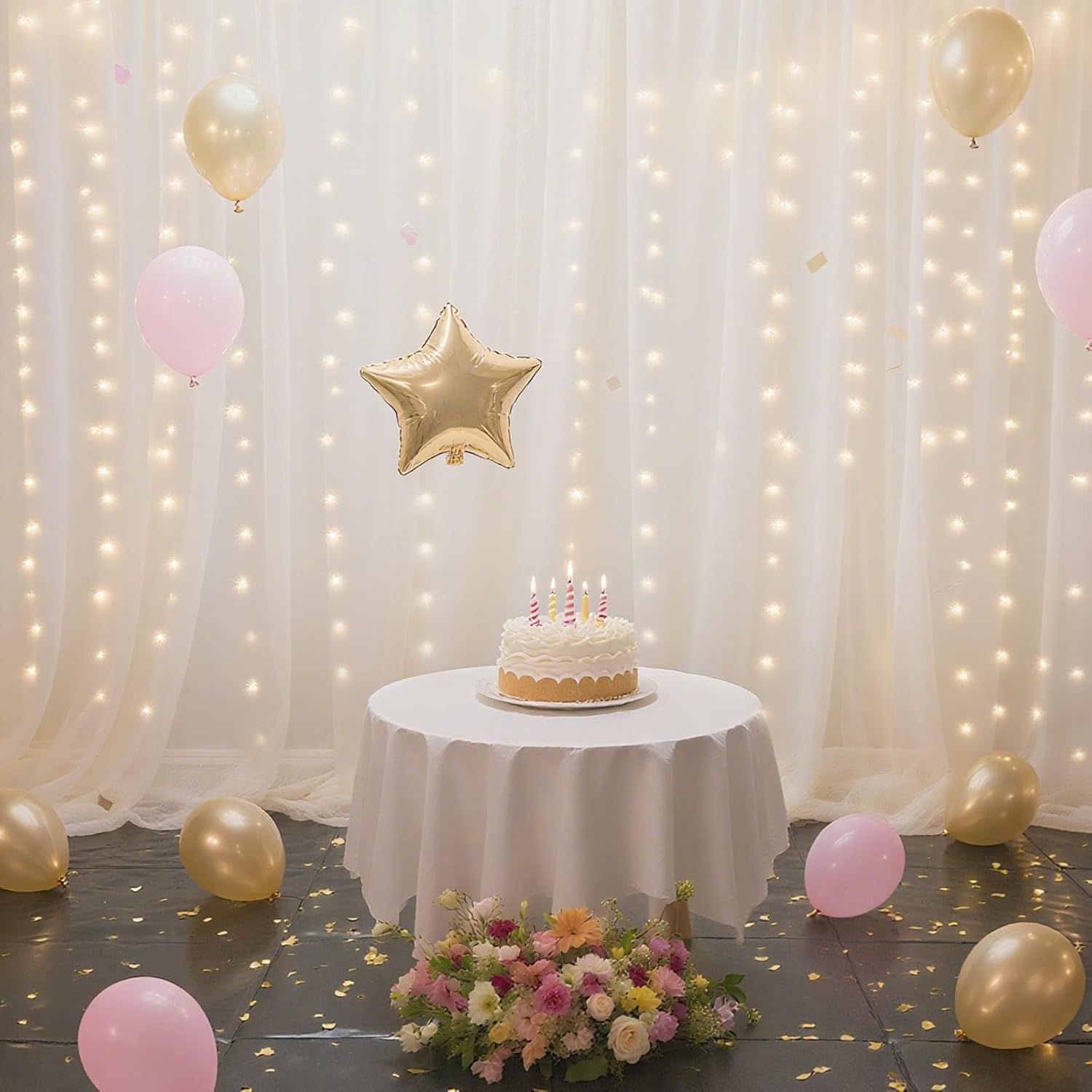 - 【10×8ft Tulle Backdrop Curtain with Lights】Create a dreamy and romantic atmosphere with our Tulle Backdrop Curtain with Lights. It features a 10x8 feet white sheer curtain paired with a 9.8 ft USB-powered warm white 300 LED string light set, complete with 10 transparent clips for easy installation, will surely make an excellent party backdrop once set up.