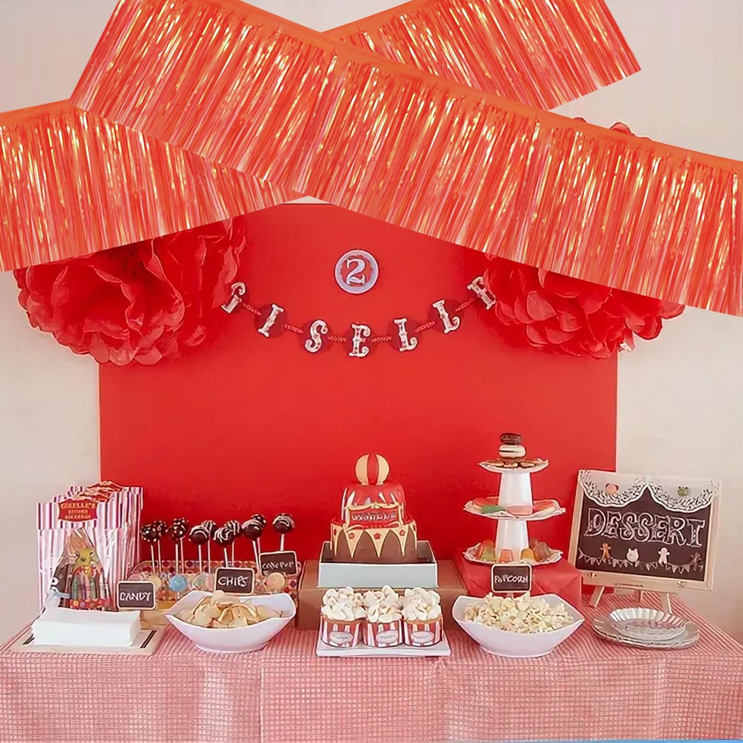 BEISHIDA 3 Packs Metallic Foil Fringe Garland Shining Red Wall Hanging Tinsel Fringe Banners for Car Floats Bridal Shower Wedding Birthday Easter Graduation Holiday Party Decoration(30 Feet)