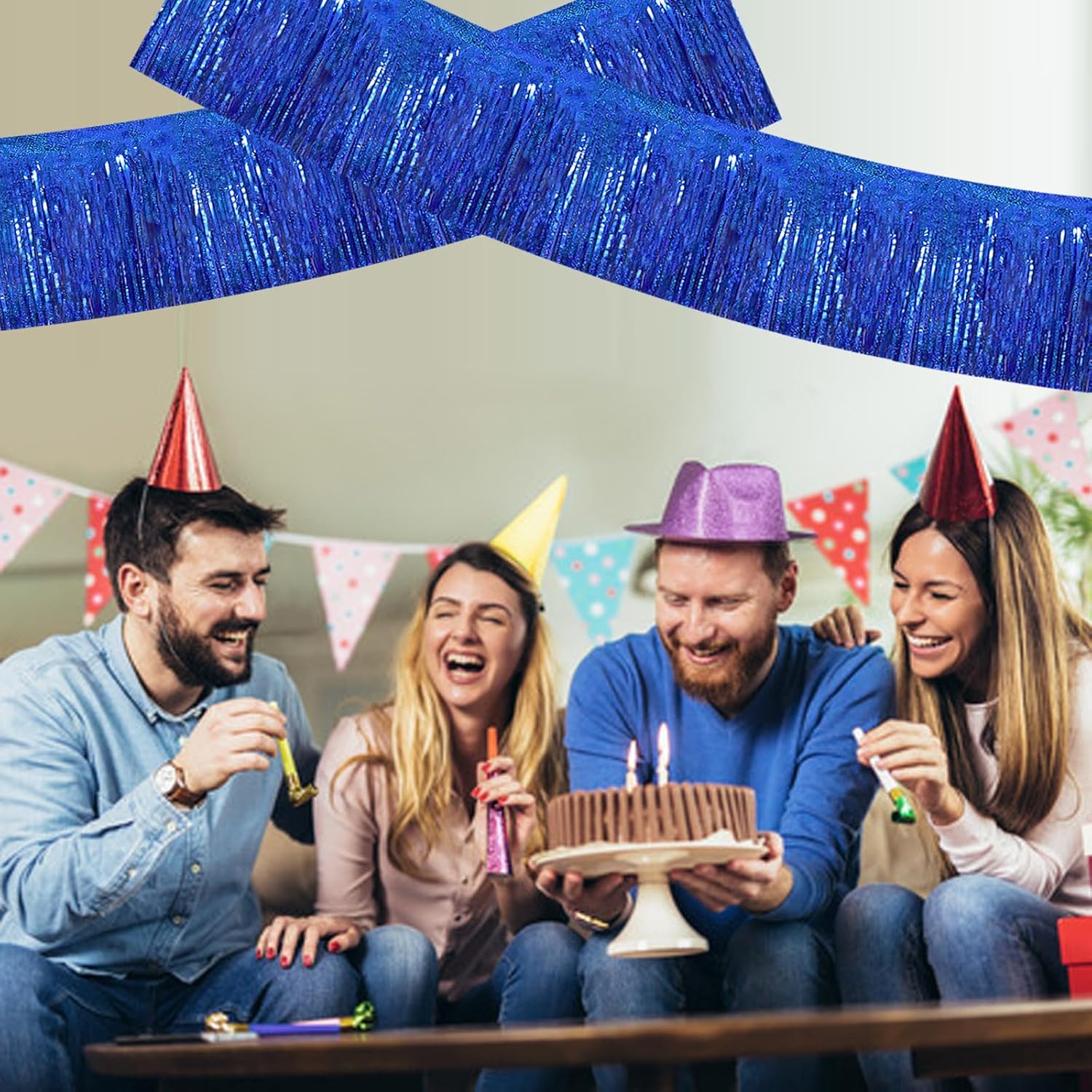BEISHIDA 3 Packs Metallic Foil Fringe Garland Laser Blue Wall Hanging Tinsel Fringe Banners for Car Floats Bridal Shower Wedding Birthday Easter Graduation Holiday Party Decoration(30 Feet)