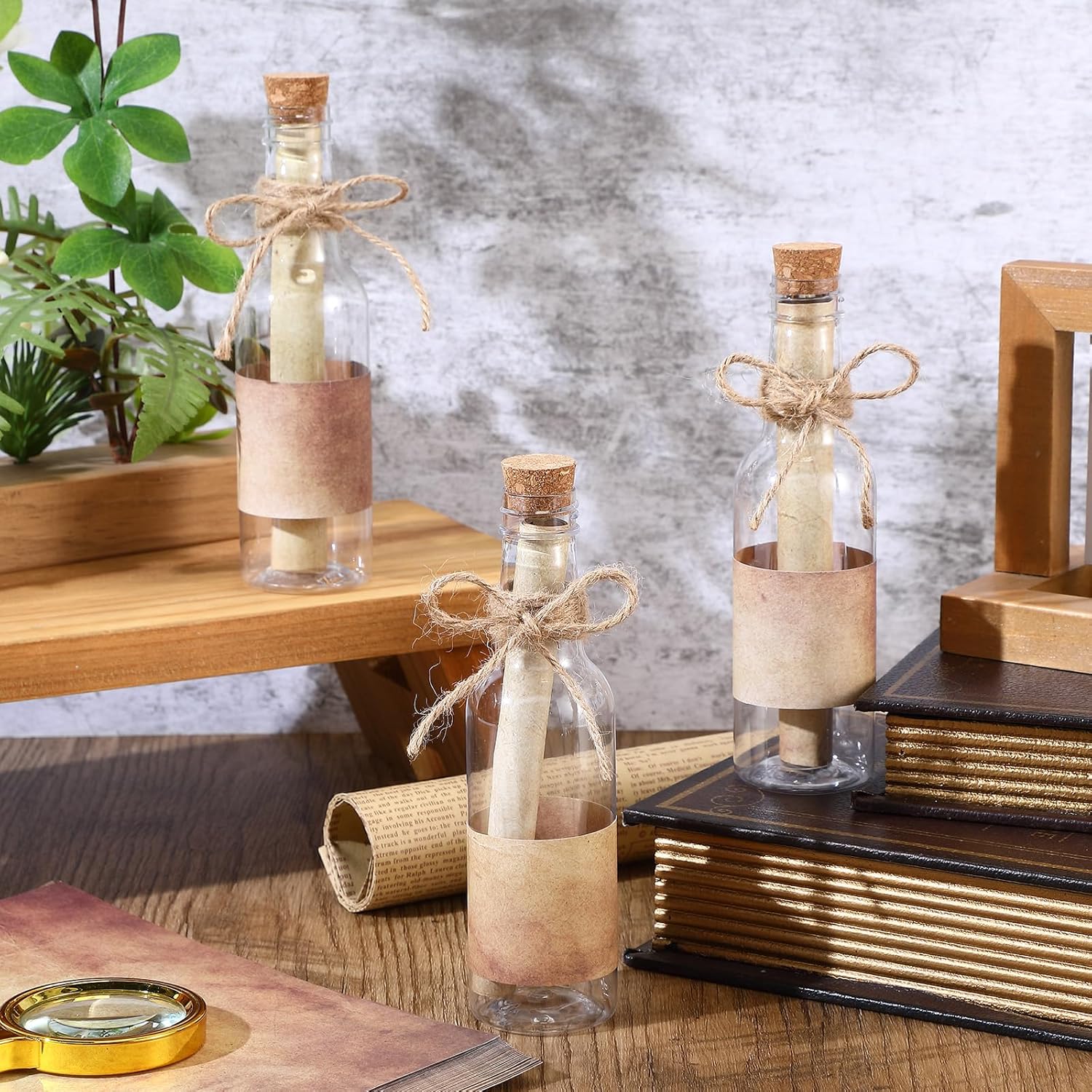 Baderke 48 Pcs 5.6 oz Message Bottles with Letter Printer Paper Plastic Bottles & Corks Twines for Message Invitations Birthday Wedding Baby Shower DIY Crafts Gift Party Favors (Vintage)