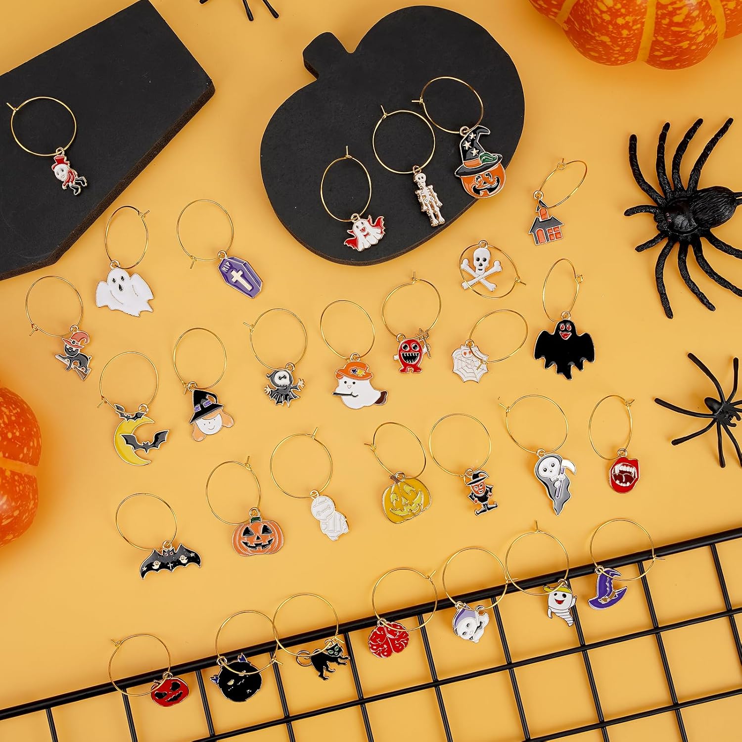 - Unique Design: These are autumn themed wine charms for stem glasses with many Halloween elements and 30 autumn wine glass charms. Each wine glass markers is unique, including pumpkin, little devil, wizard hat, broom, moon, castle, bat, spider, mummy, skeleton, cat, creating a scary and fun Halloween atmosphere, bringing more joy to your Halloween party. Different shapes of cocktail decorations can not only easily attract others' attention, but also decorate your wine glass well