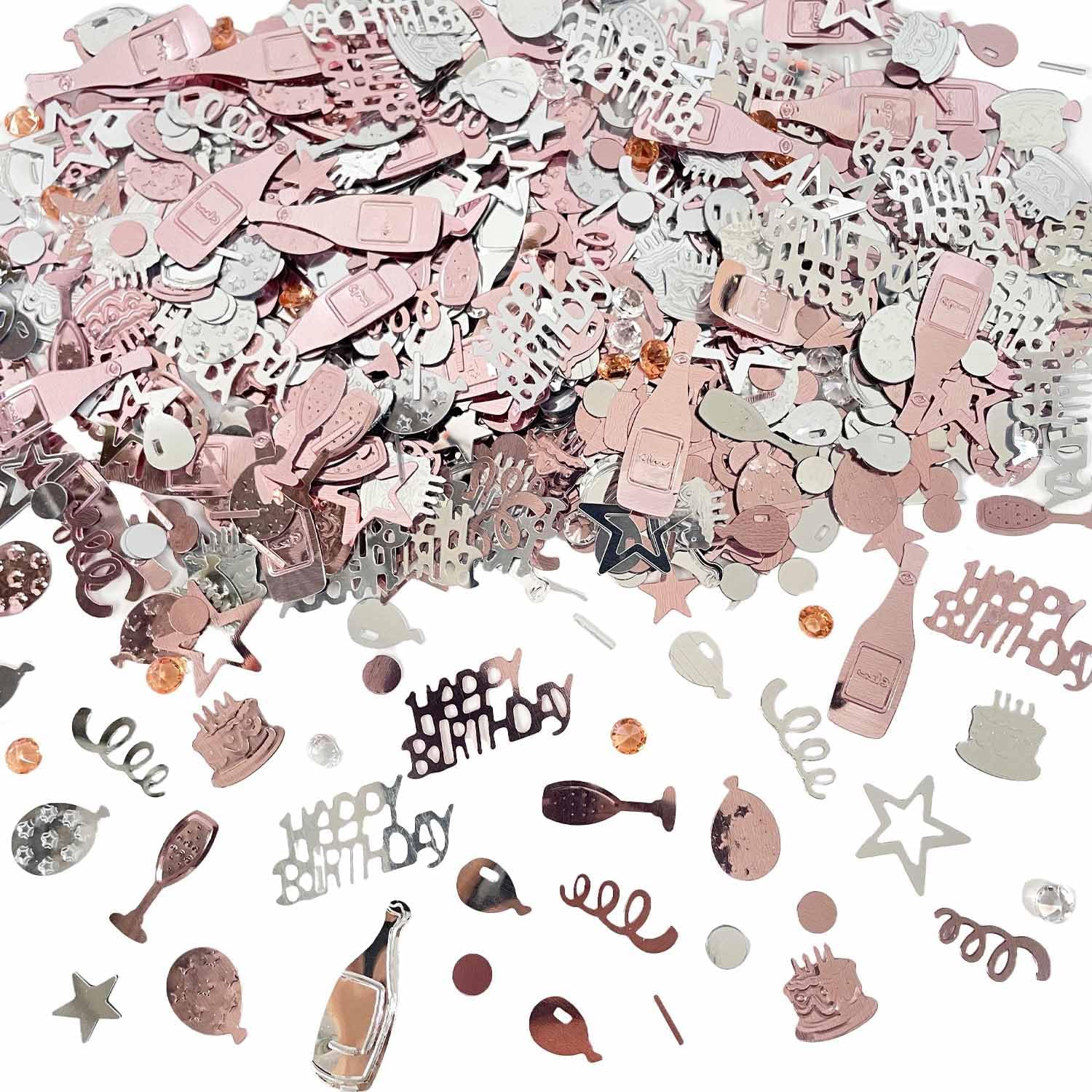 Pink Happy Birthday Confetti, Birthday Decorations Confetti Metallic Foil Table Scatter Decorations for Party Decor, Baby Shower Decor for Gilrs Women, DIY Arts and Crafting