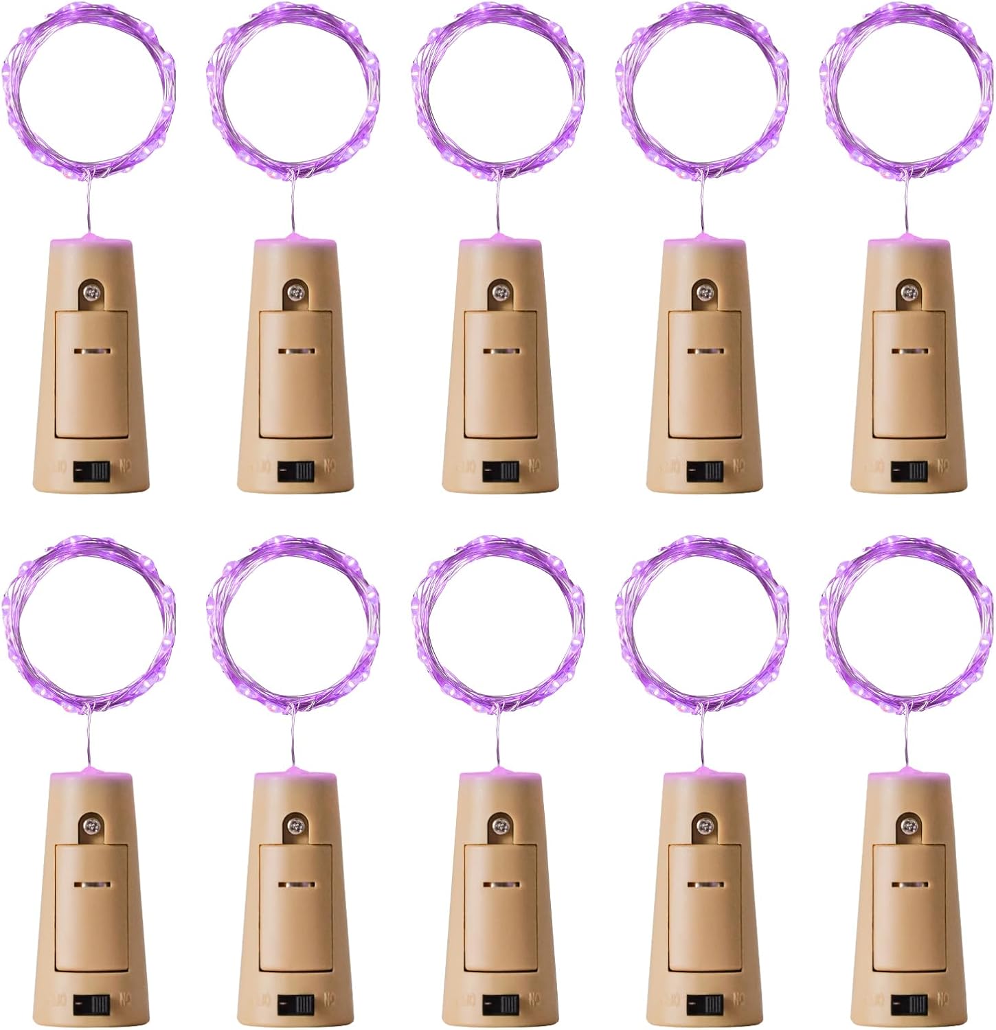 Aluan Wine Bottle Lights with Cork 10 Pack 20 LED Waterproof Halloween Fairy Light Battery Operated, Mini LED Cork Lights for Liquor Bottles Wedding Table Decor Party Jar Bar Table Decoration, Purple