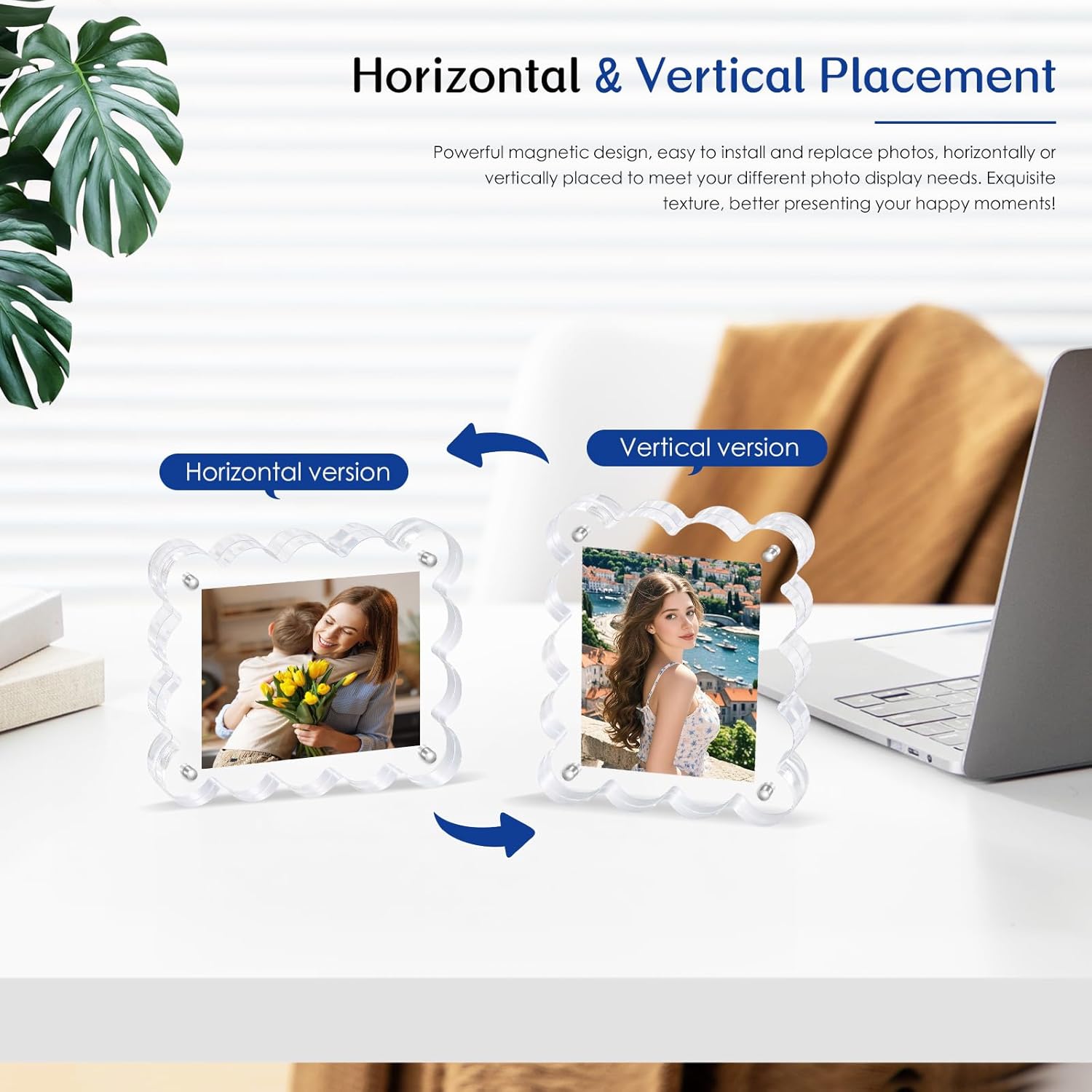 - 【Versatile Dual-View Display Options】 – Position these magnetic acrylic picture frames horizontally or vertically. Perfect for desks, shelves, weddings, or events, they adapt effortlessly to any space or occasion