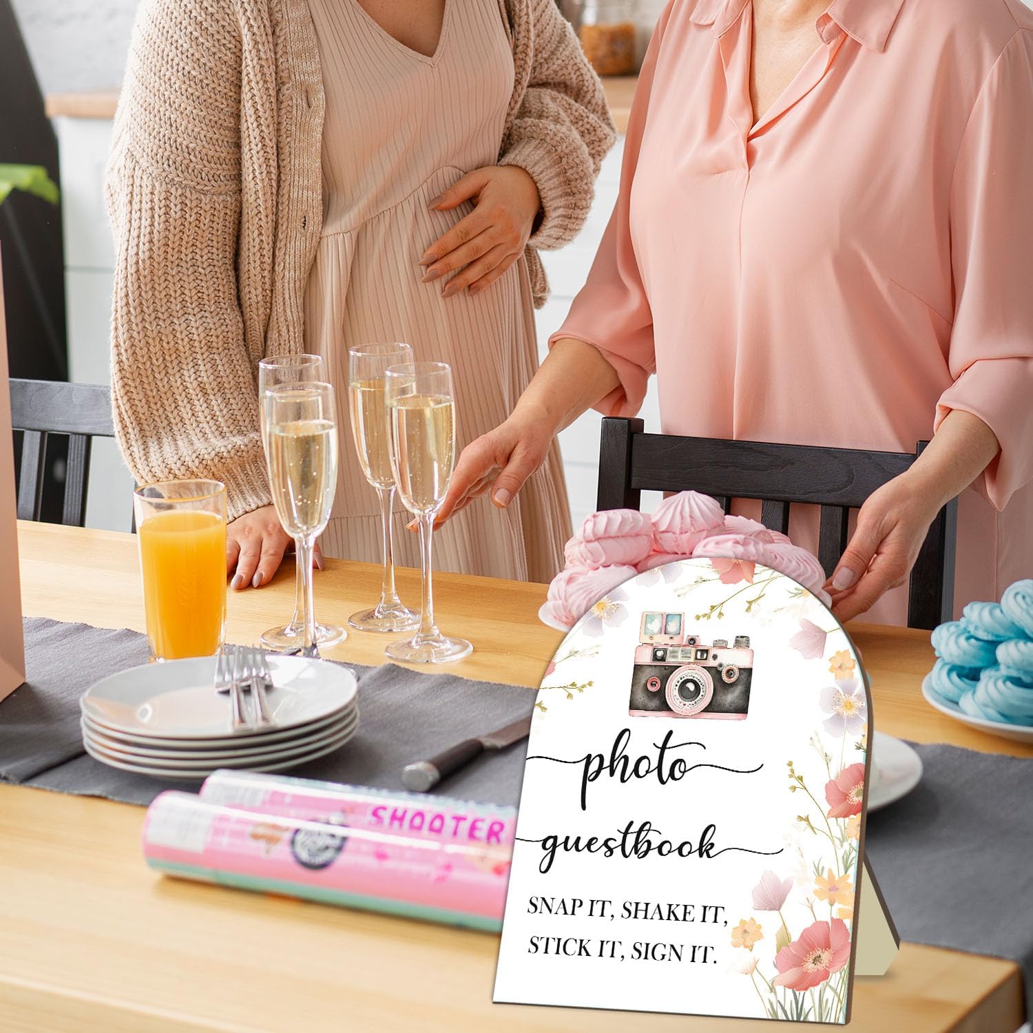 Wedding Photo Guestbook Desk Plaque, Floral Decor Party Welcome Sign, Bridal Shower Sign, Baby Shower Decoration Supplies, Wedding Shower Supplies, Reception Decor with Stand 8 * 10In