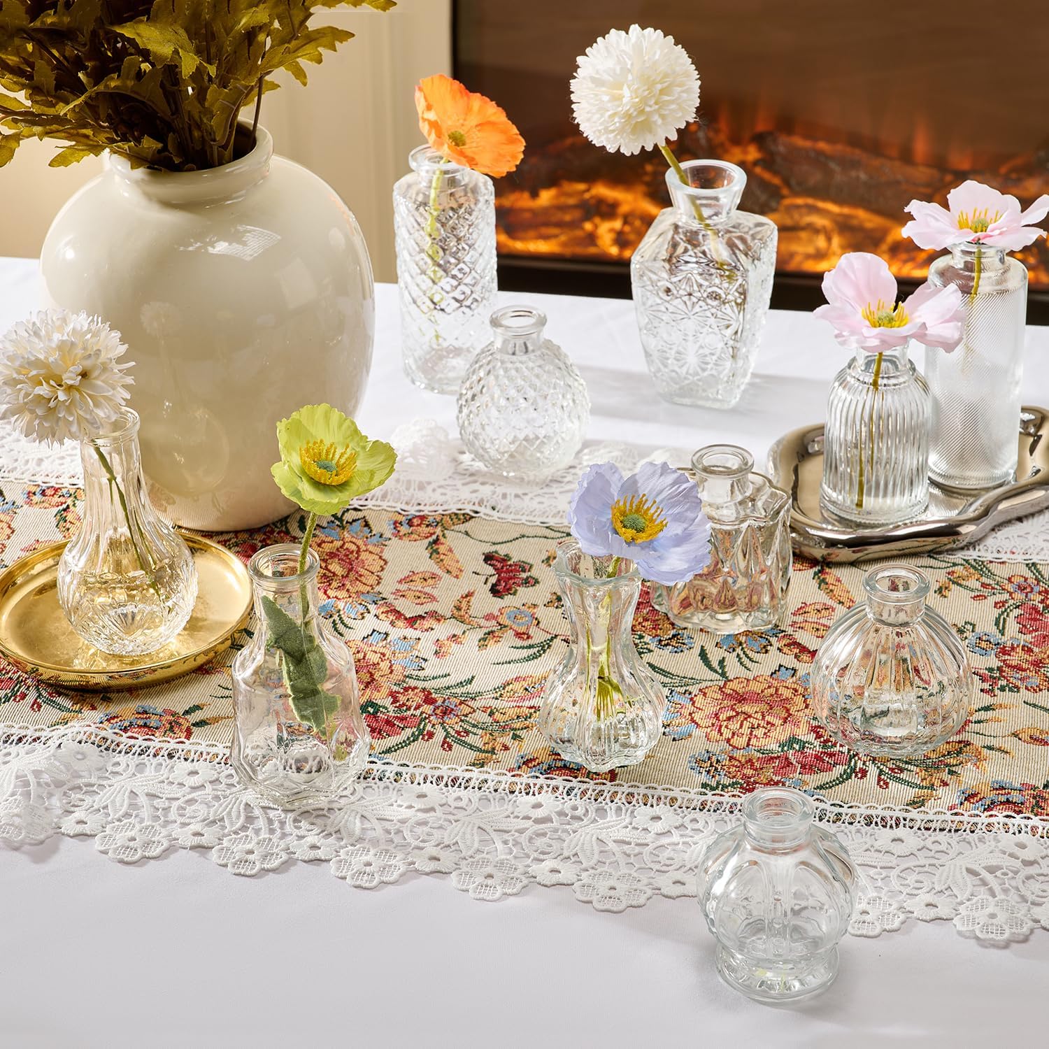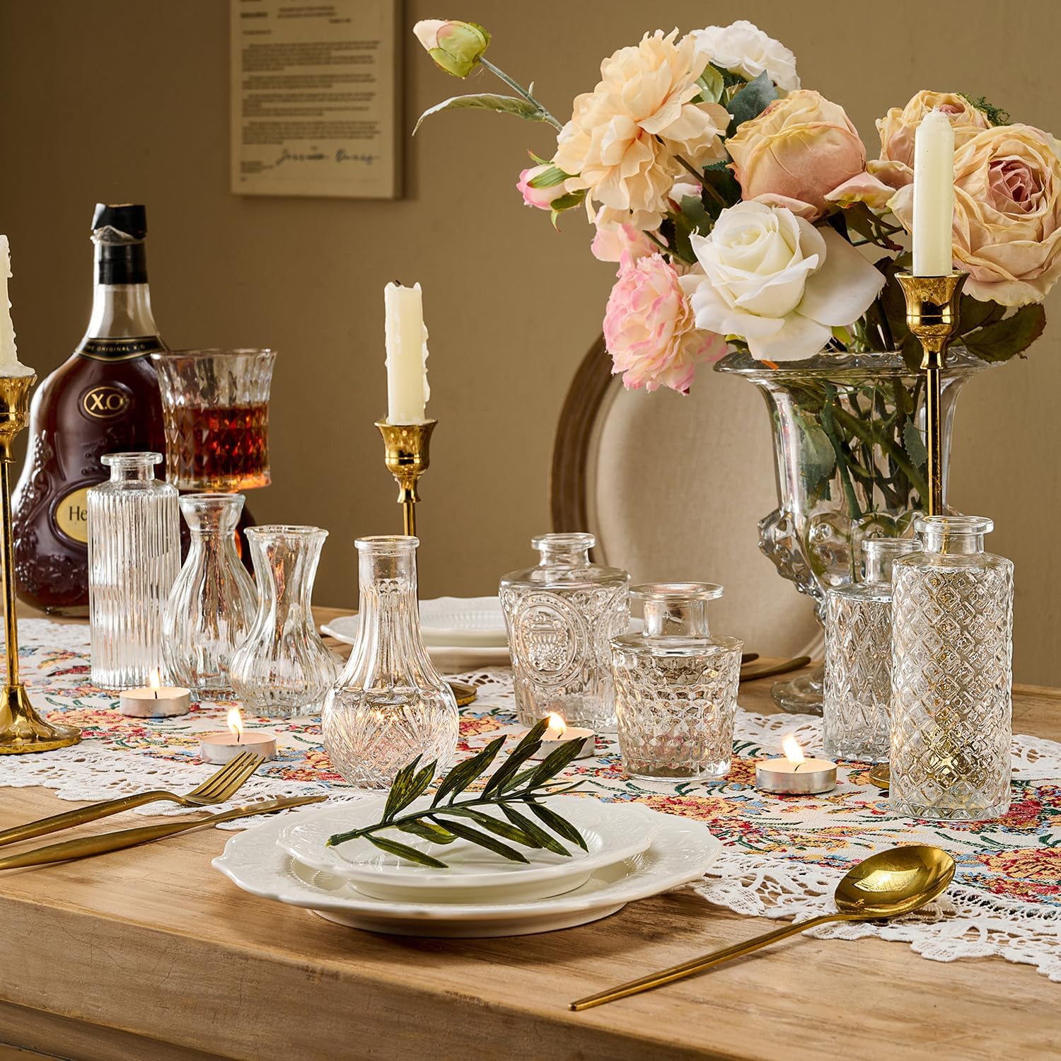 - Versatile Flower Bud Vase Set: This set comprises 76 diverse transparent glass flower bud vases, each adorned with etched designs to further elevate their charm. It is perfectly suited for any home décor. Whether placed as a centerpiece on dining tables, window sills, or wedding banquet tables, these small vintage crystal vases will lend an air of elegance to the setting.