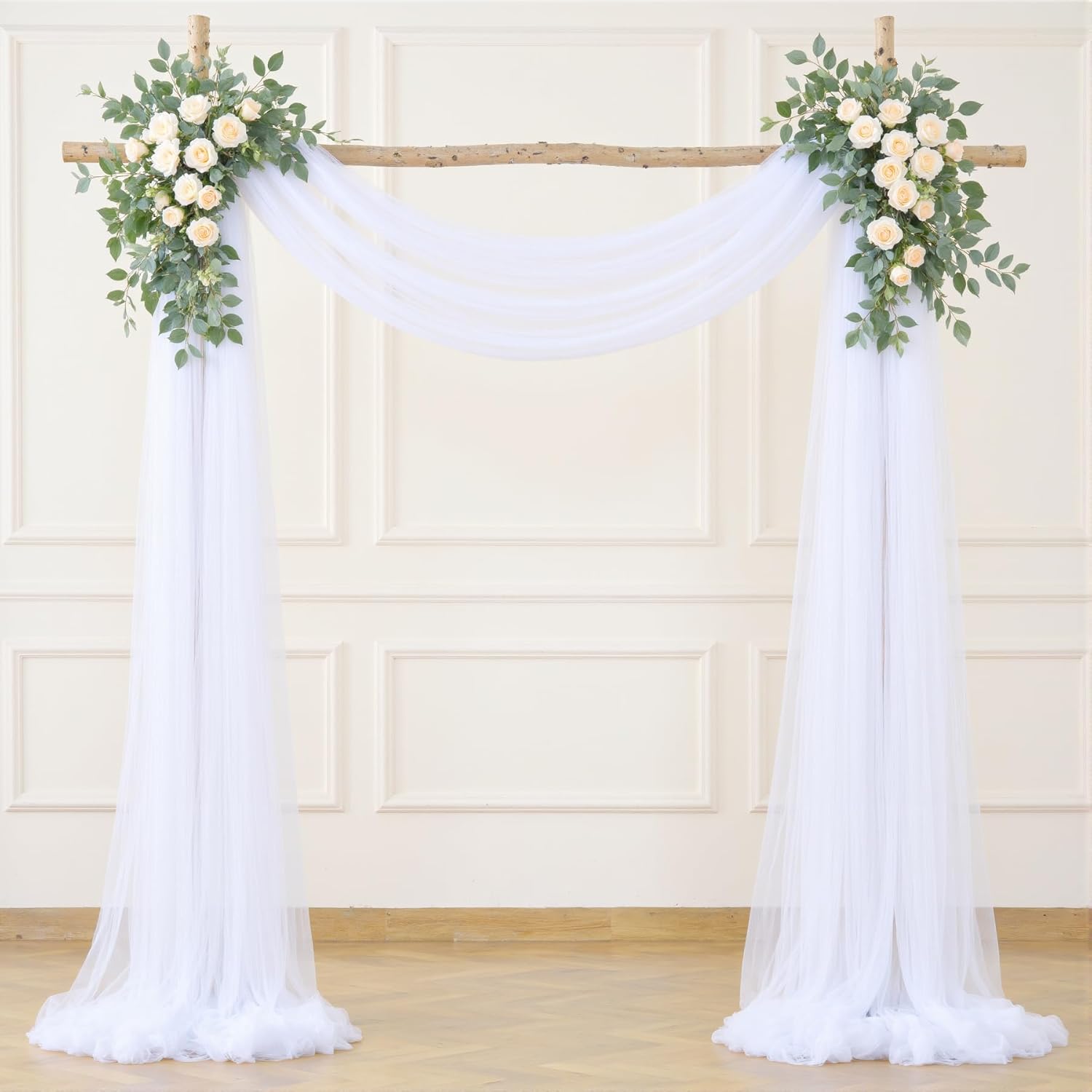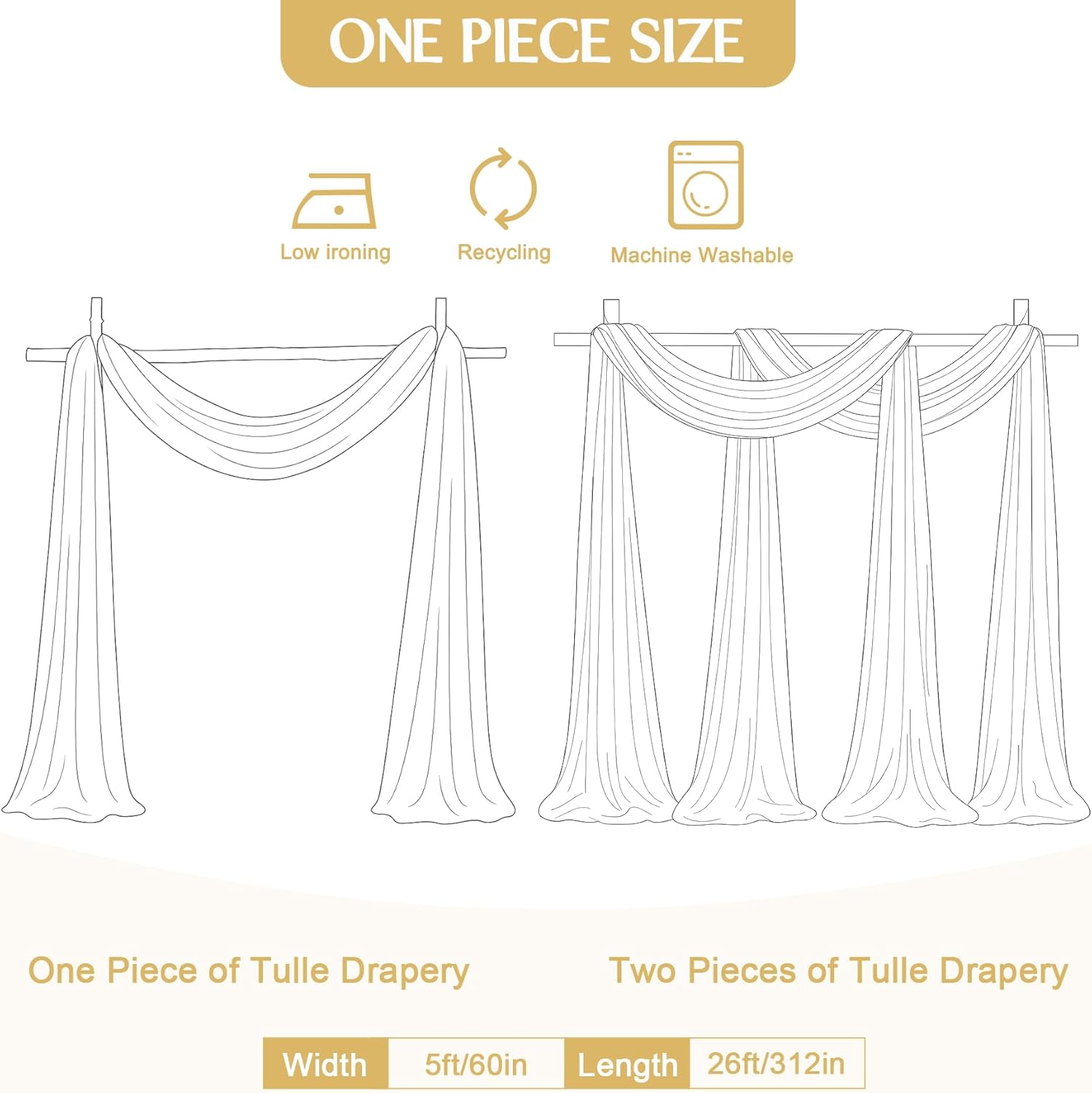 - DIY Wedding Arch Drapery Fabric: The oversized sheer backdrop curtain provides ample creative space for customization. Easily transform these arch drapes for wedding ceremony into stage drapes, elegant table runners, stairway bows, or other unique wedding arch drapes. It also makes a thoughtful handmade gift for loved ones, conveying heartfelt sentiments
