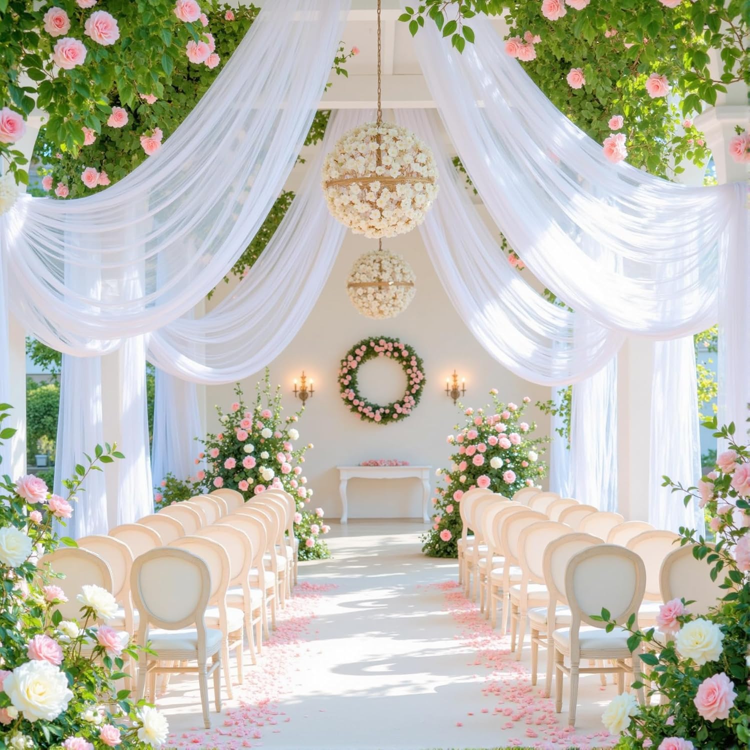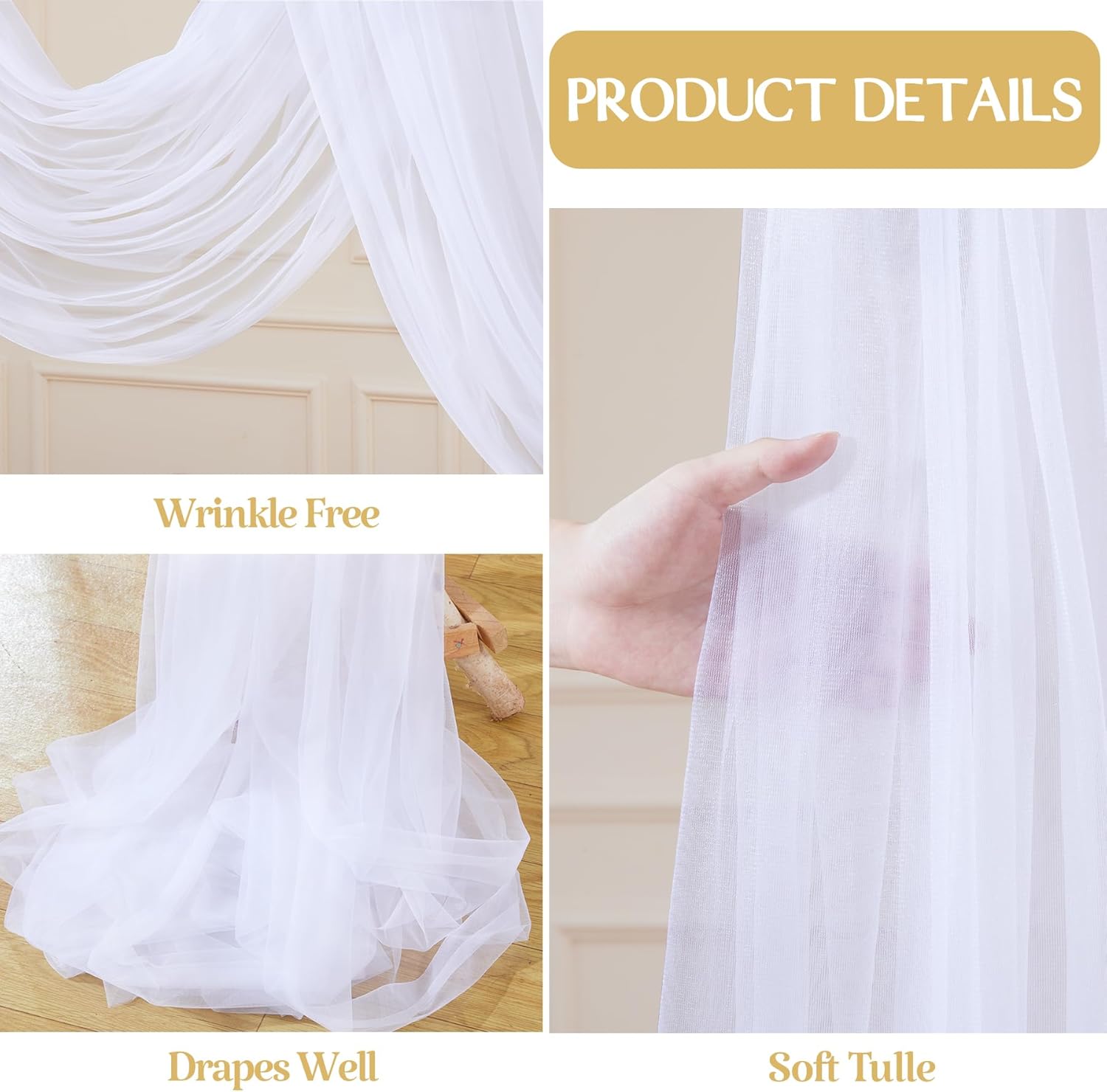 - Premium Chiffon Fabric for Draping: Made of high-quality polyester tulle, this fabric is soft, wrinkle-resistant, and durable. The naturally cascading hem forms beautiful layered folds, gracefully draping over your arch to add a dreamy, romantic ambiance—perfect for enchanting wedding photo backdrops