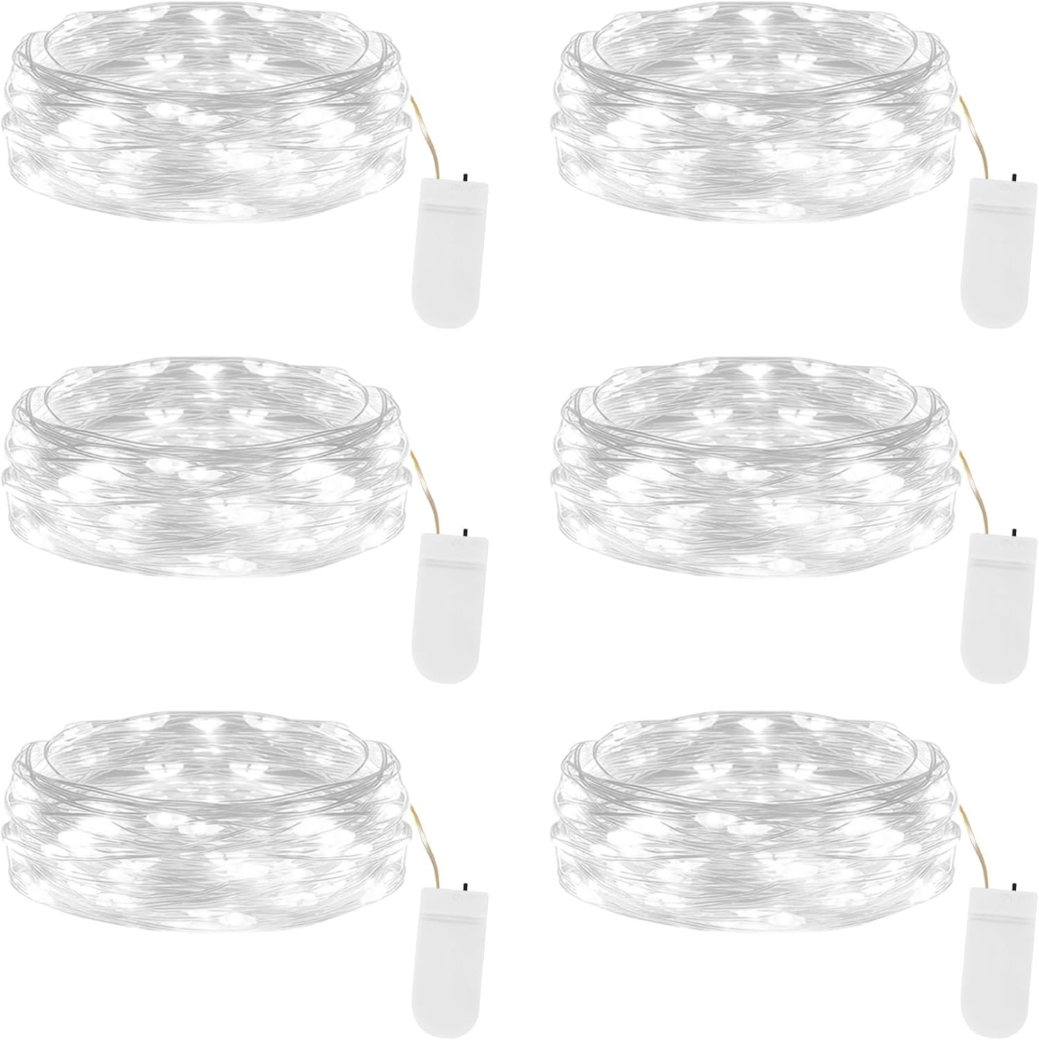 - 【6-Pack Battery Operated String Lights】 Powered by 2 CR2032 batteries, these fairy lights are equipped with 20 energy-efficient micro LEDs that are perfect for use in mason jars, wine bottles, vases, DIY crafts, wreaths, centerpieces, or gift wrapping. Ideal for cozy evenings, festive holidays, or romantic celebrations, a soft and magical glow is effortlessly created, transforming ordinary moments into unforgettable memories