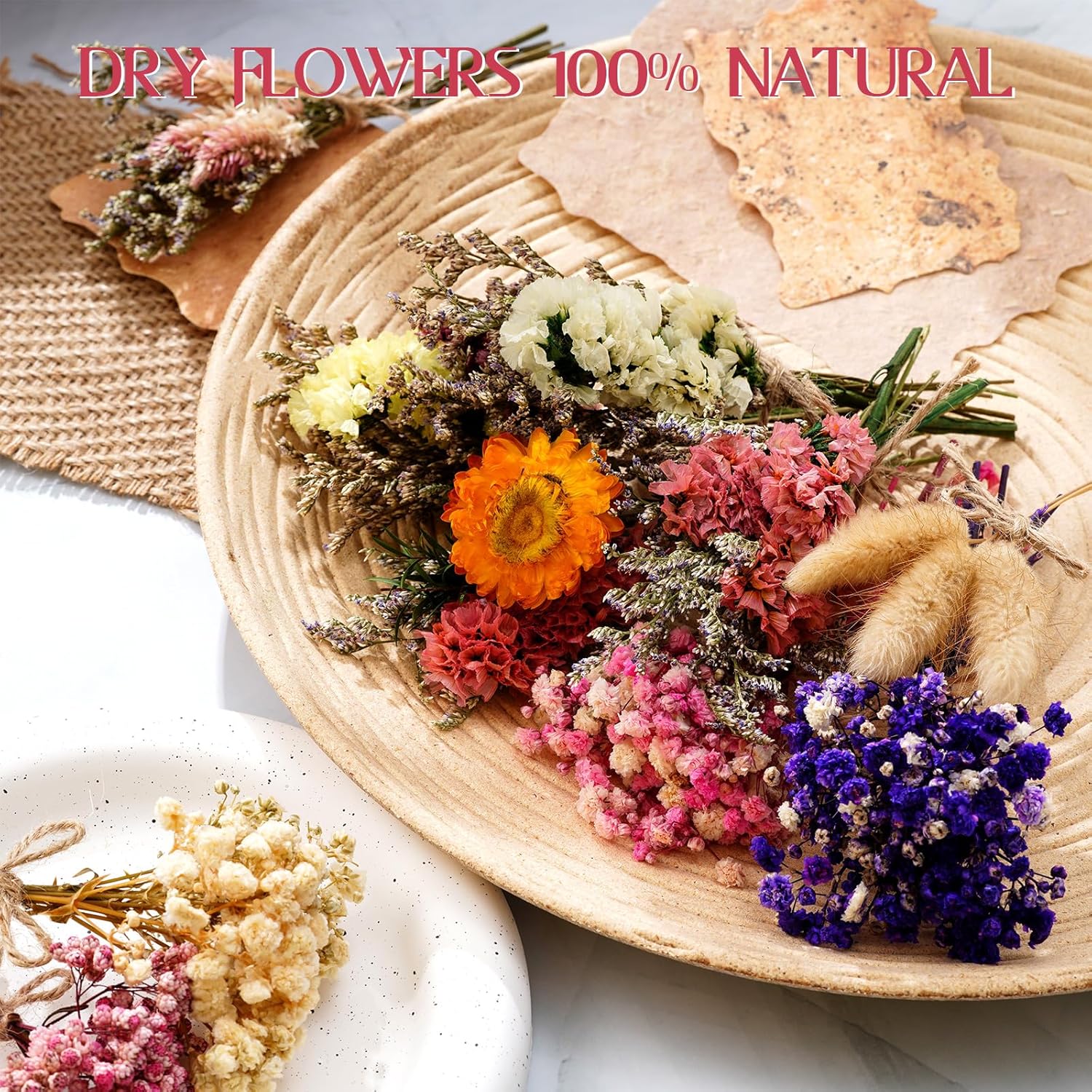 - Natural beauty: Our dried flowers are derived from 100% natural flowers, which are dried and embossed to retain the original color and texture of the flowers. Each flower is carefully wrapped in fine twine, and due to its natural nature, each bouquet is unique. The color, style and picture may be slightly different, and it may also exude a subtle natural fragrance
