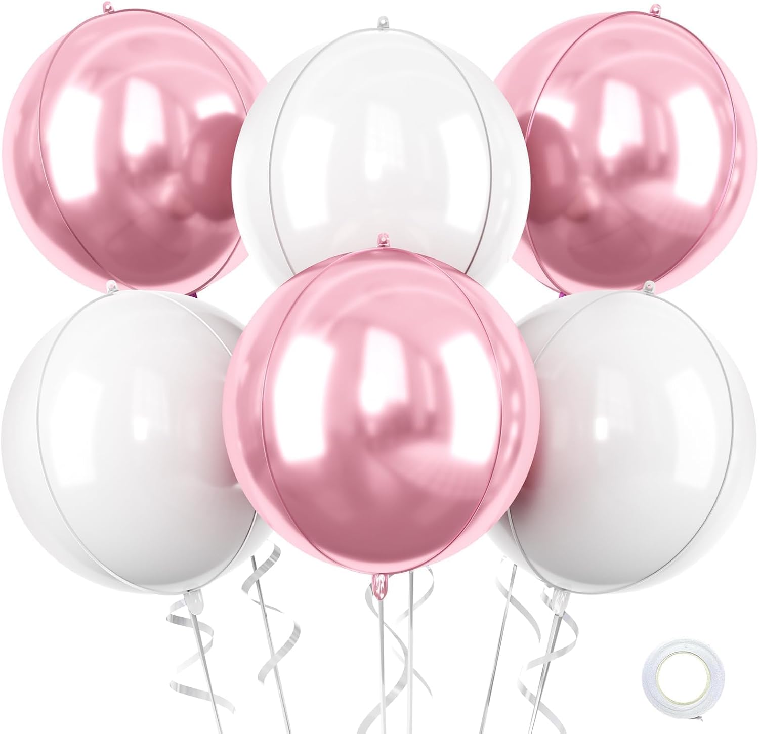 - Package Contains – 6 pcs 22-inch pink and white round 4D foil balloons, 1 pc straw and 1 pc ribbon. These large, eye-catching balloons are perfect for elevating your party decor with a bold and stylish touch.