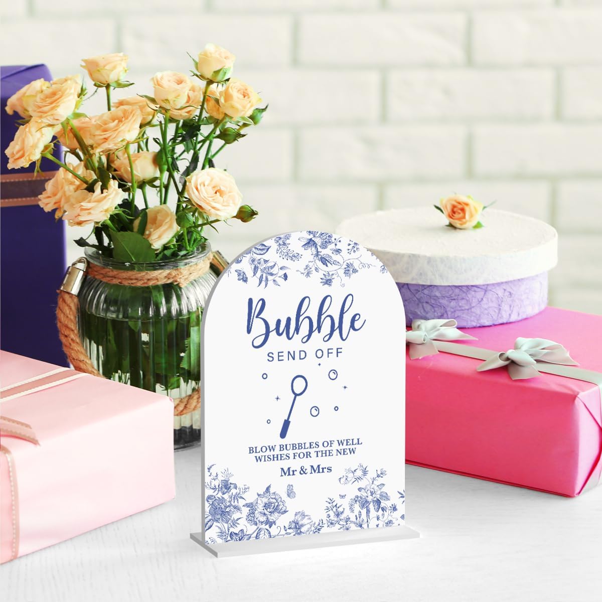 Acrylic Wedding Signs, Dusty Blue Wedding Decor, Blue Weddings Decor, Bubble Send Off Signs for Reception, Modern Calligraphy Arch Acrylic Table Top Sign for Weddings Parties Dinners (White)