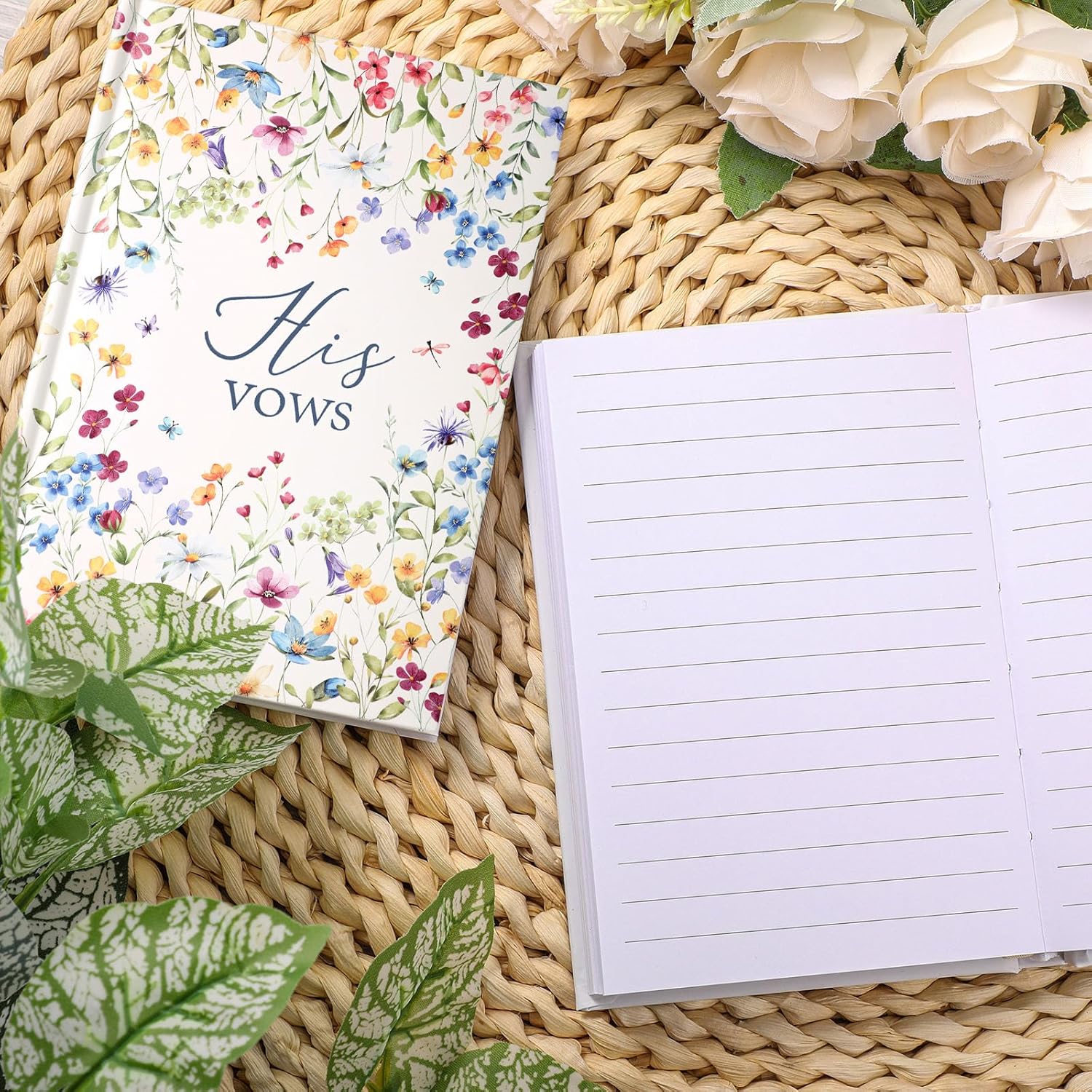 Set of 2 Vow Books His and Hers, Wedding Vow Books (6.06x4.17) Wedding Keepsake Essentials Elegant Bridal Shower Ceremony Gift Elopement Essentials (Colorful,Wildflowers)