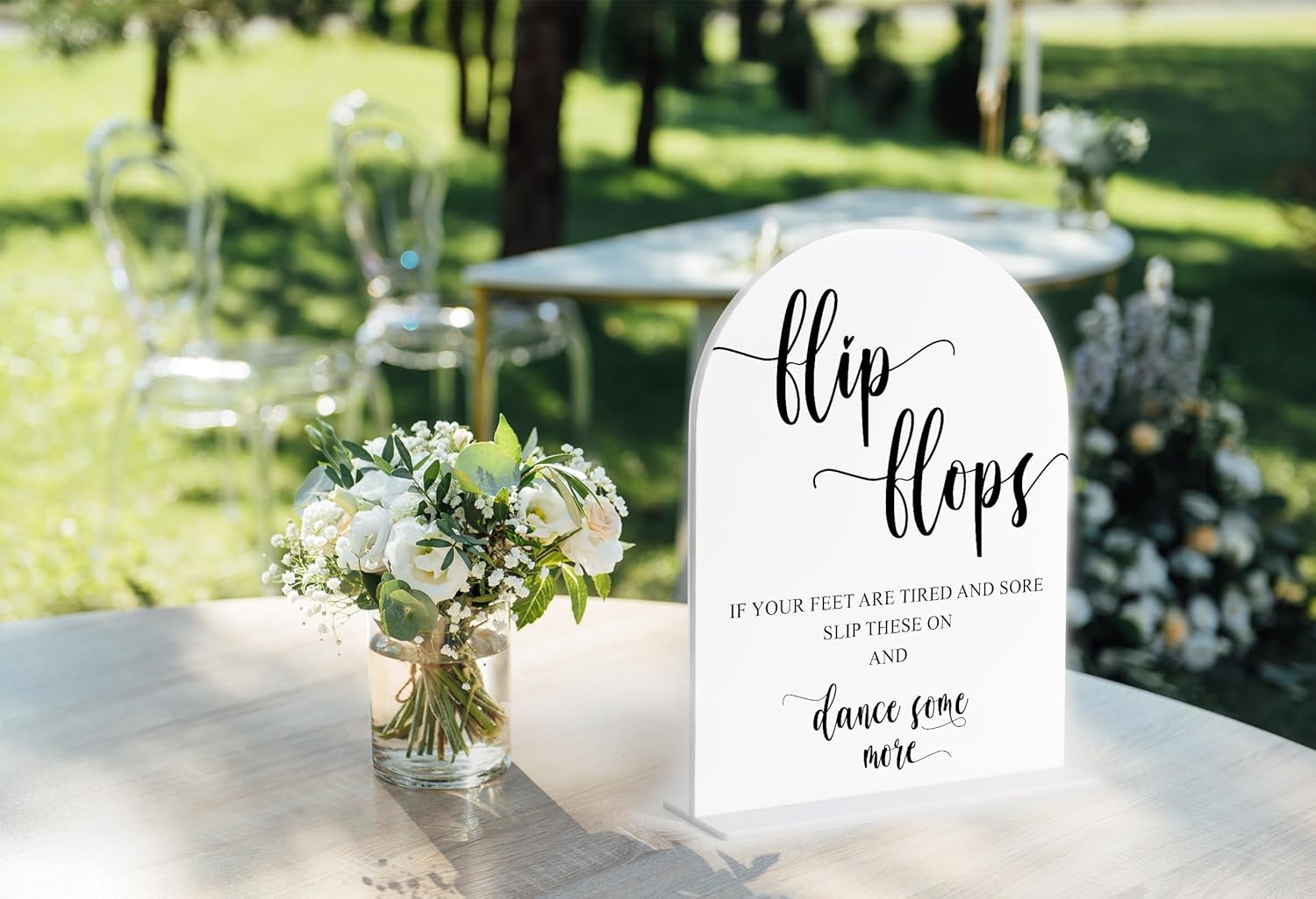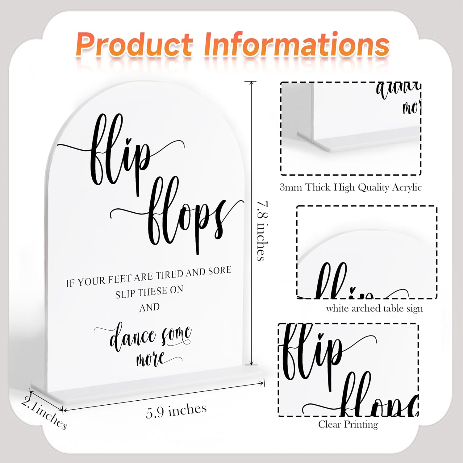 Wedding Flip Flops for Guests Sign, White Arch Acrylic Sign, Wedding Dance Floor Props, Bridal Shower Decor, Engagement Party Decor, Centerpiece Table Decorations Party for Bride and Groom-12