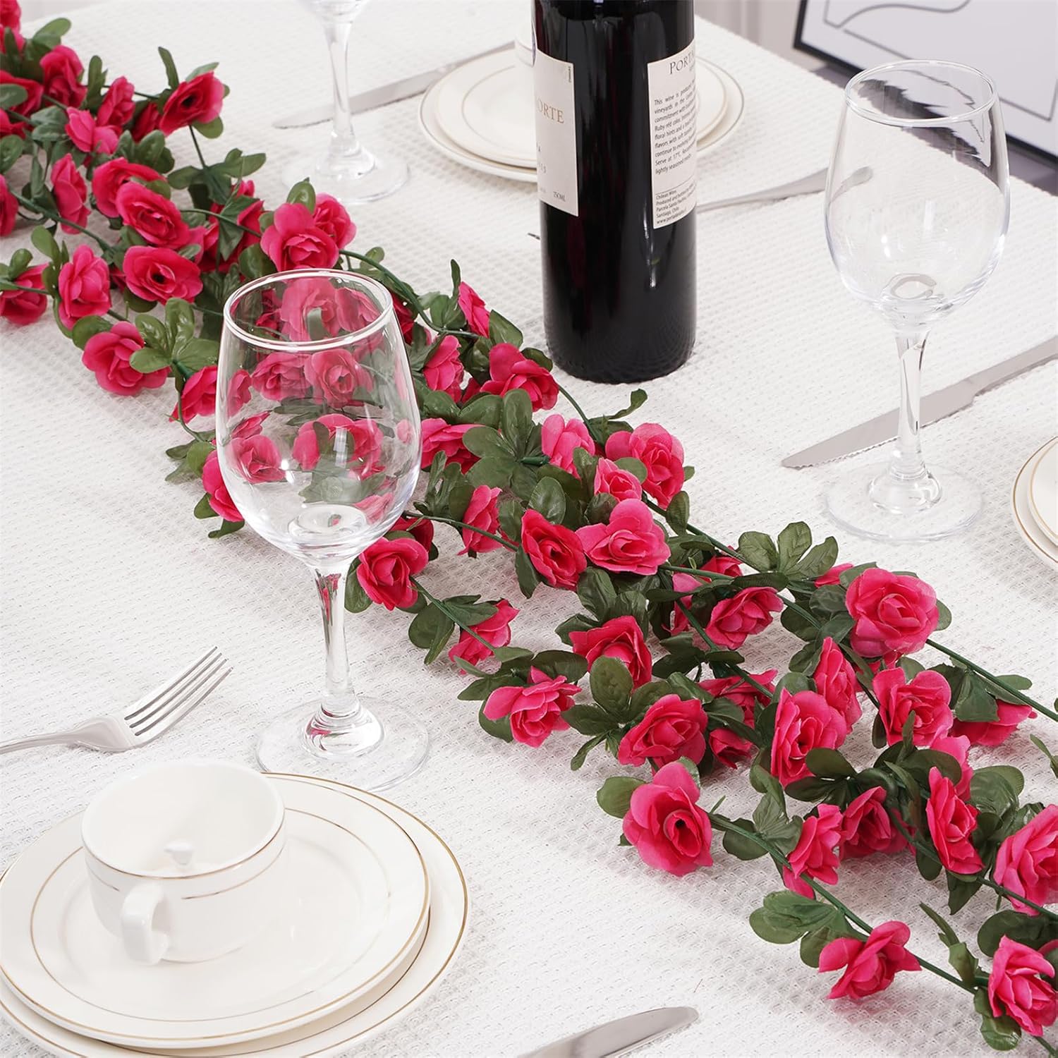 10 Pcs 82FT Flower Garland, Artificial Rose Garland Flowers Plants Fake Flower Hanging Rose Ivy, Birthday Party Valentine's Day Wedding Wall Arch Decor(Fuchsia)