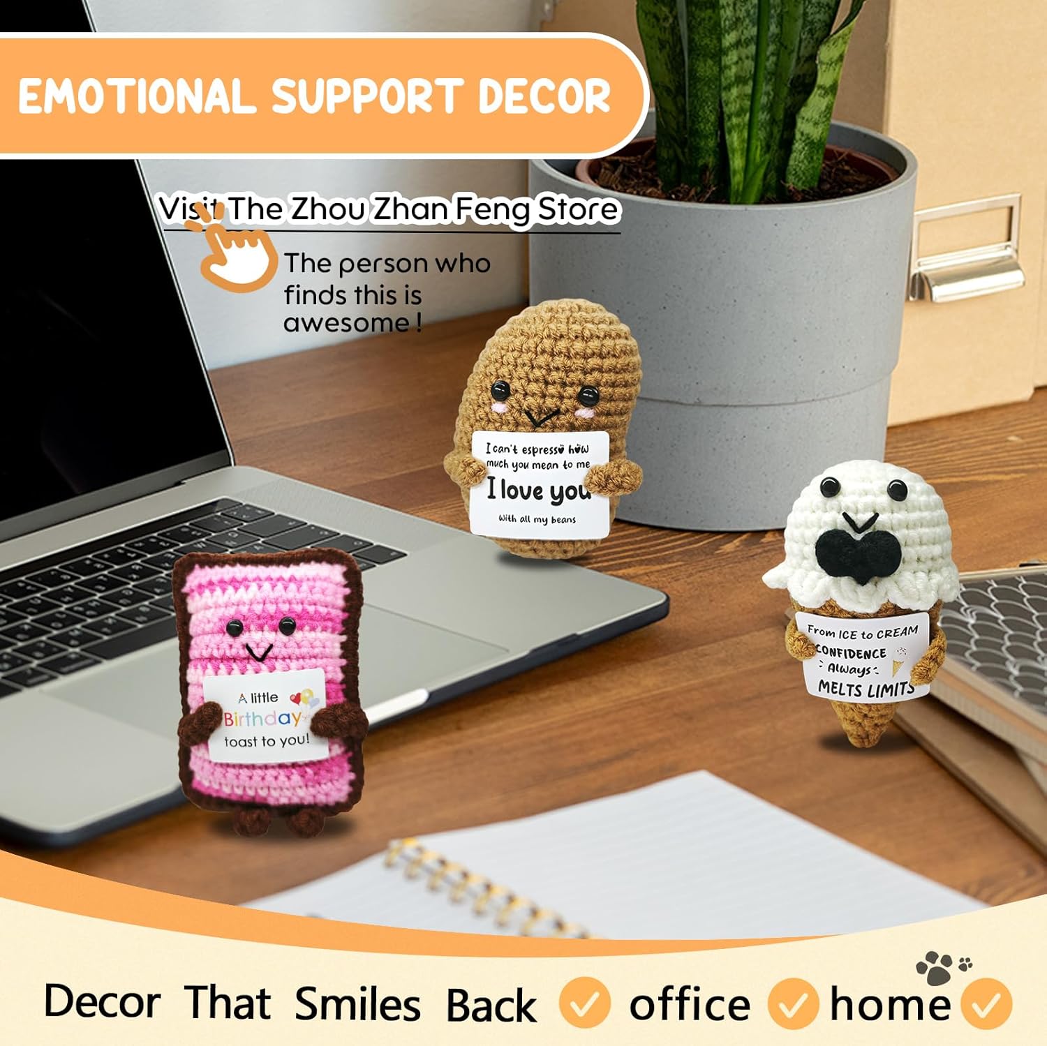 - 【Cheerful Crochet Friend】This handcrafted doll radiates positivity,offering comfort and joy in everyday life.Its uplifting presence reminds you to focus on the bright side,helping you stay hopeful and resilient during tough times.A little companion that strengthens the heart with warmth and optimism