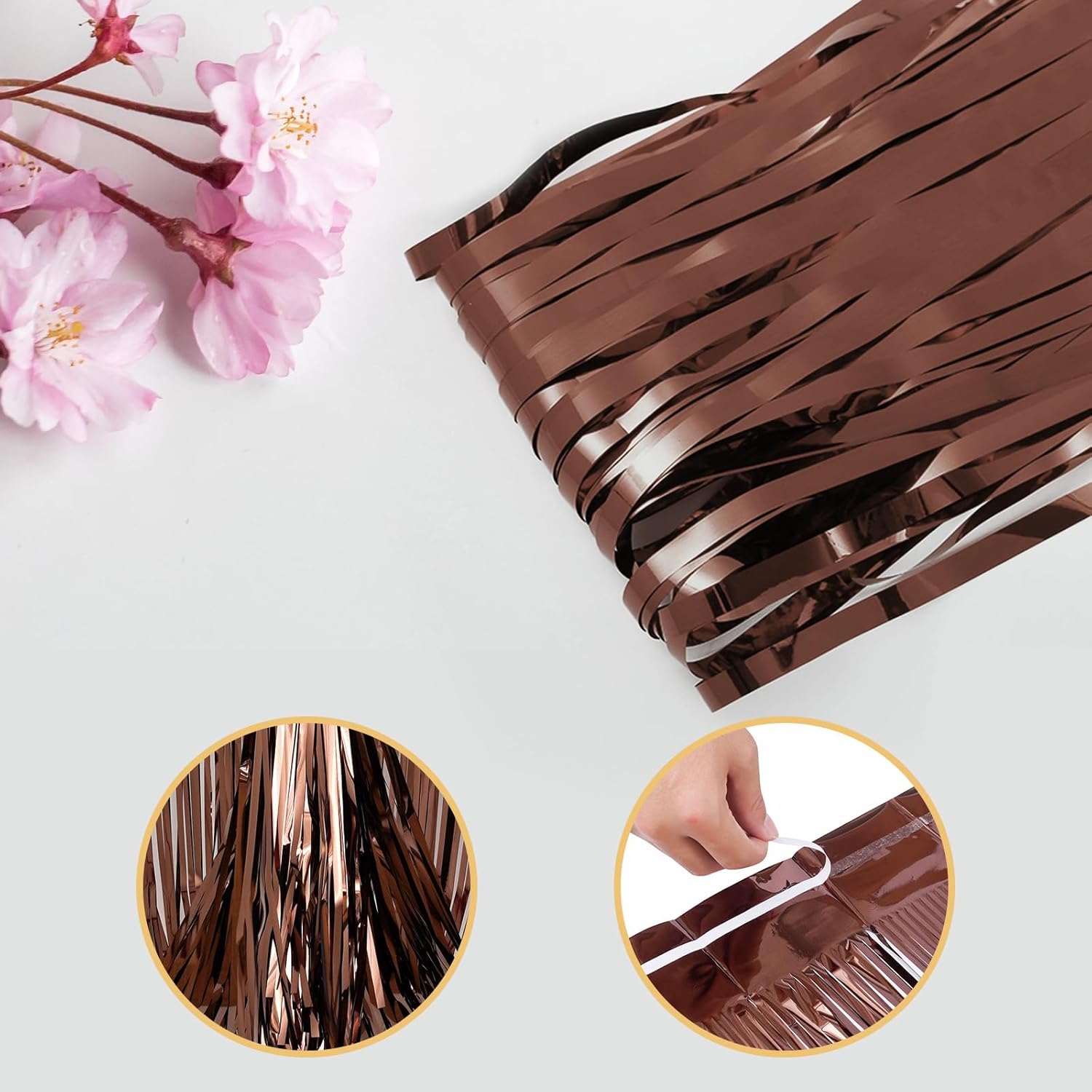 5 Pack Brown Fringe Backdrop 3.2ft x 8.2ft Silver Foil Fringe Curtains Party Tinsel Curtain Backdrop Streamers for Birthday Party Decoration Wedding Christmas Decoration (Brown)