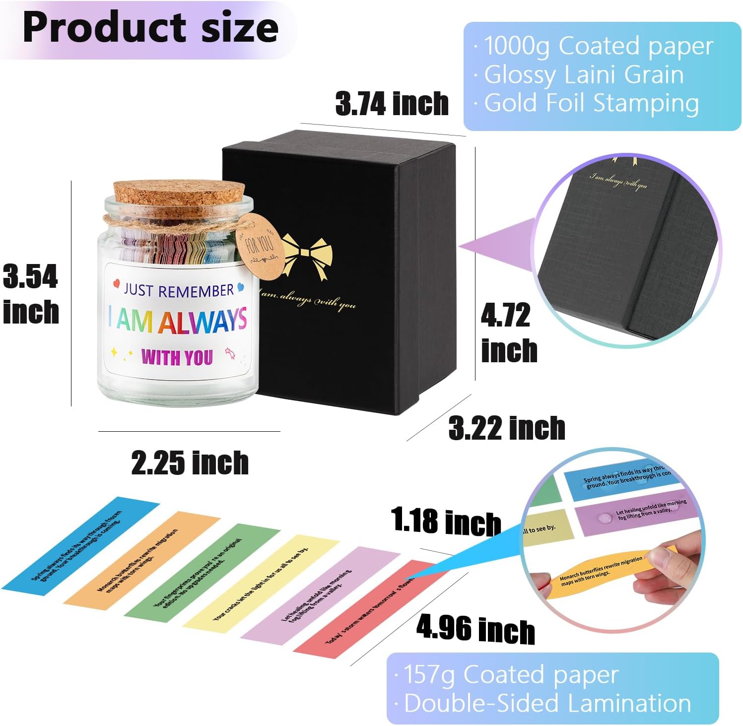 I Am Always With You Jar with 90 Motivational Cards Comfort Gifts for Women Friends, Sympathy Get Well Soon Encouragement Cancer Survivor Recovery Gifts for Women Men