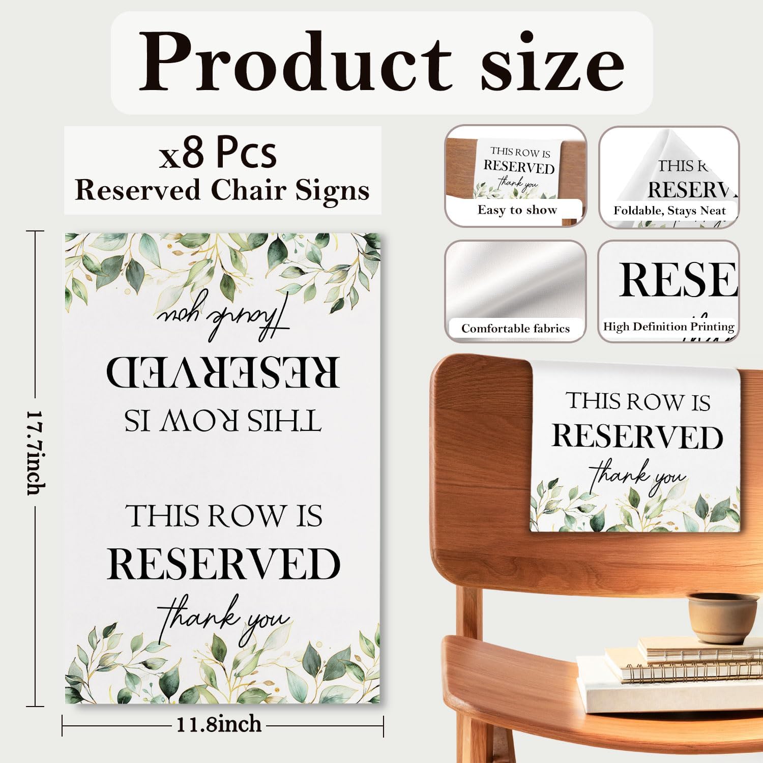 - Universal Fit: Each reserved seat sign measures approx. 30 x 45 cm / 11.81 x 17.73 inches, making it suitable for most standard chairs and benches. The size ensures that the message is easily visible to guests, while remaining easy to store and carry.