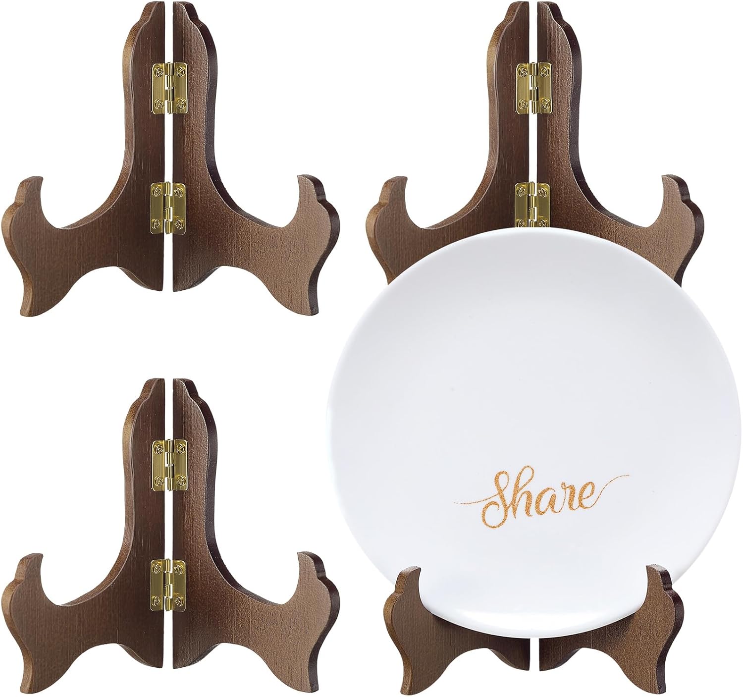 Tatuo 4 Packs Wooden Display Stand Decorative Plate Stands for Display Picture Frame Holder Easels (Brown,5 Inch)