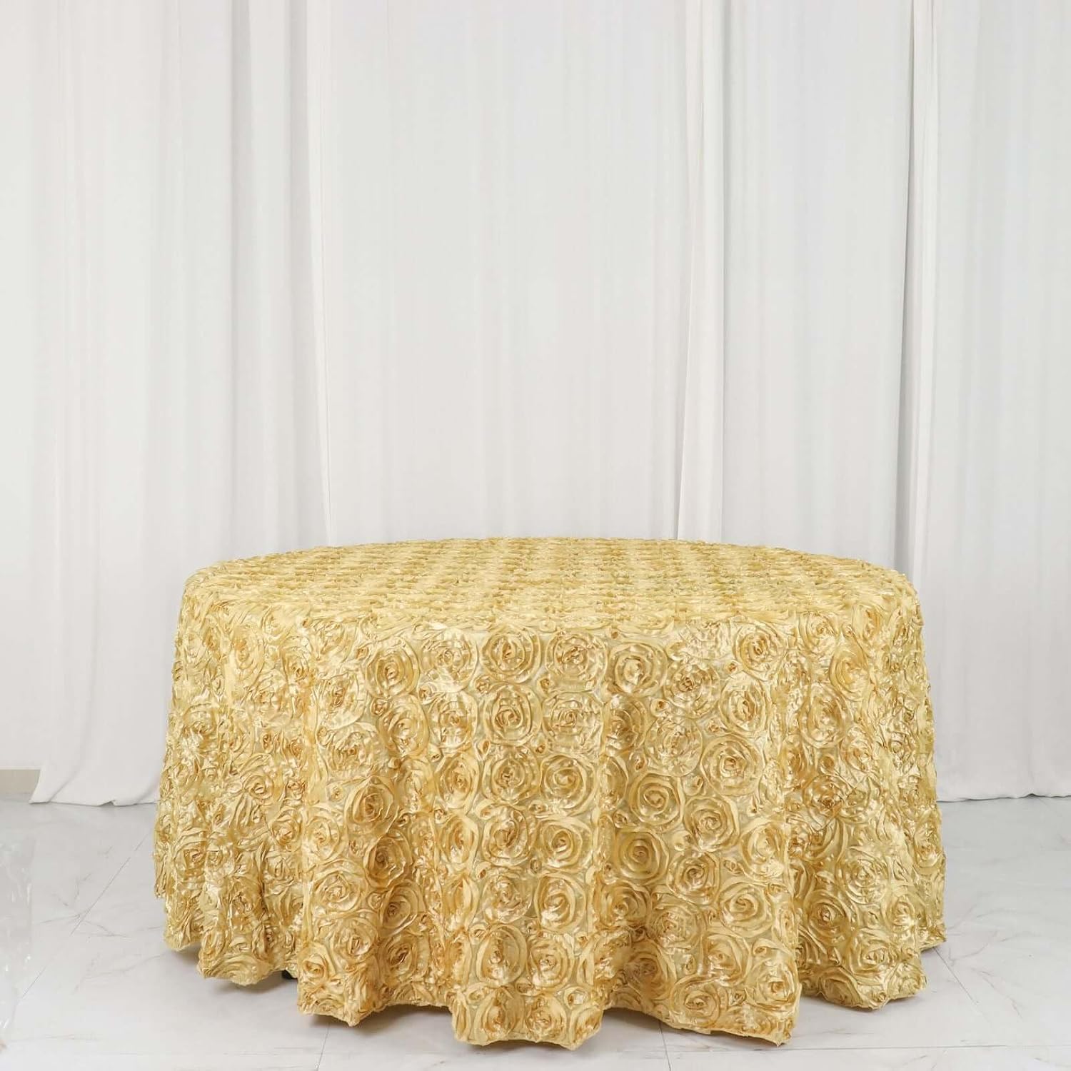 Efavormart 120" Wholesale Round Table Cover Champagne Grandiose Rosette 3D Satin Tablecloth for Wedding Party Event Decoration