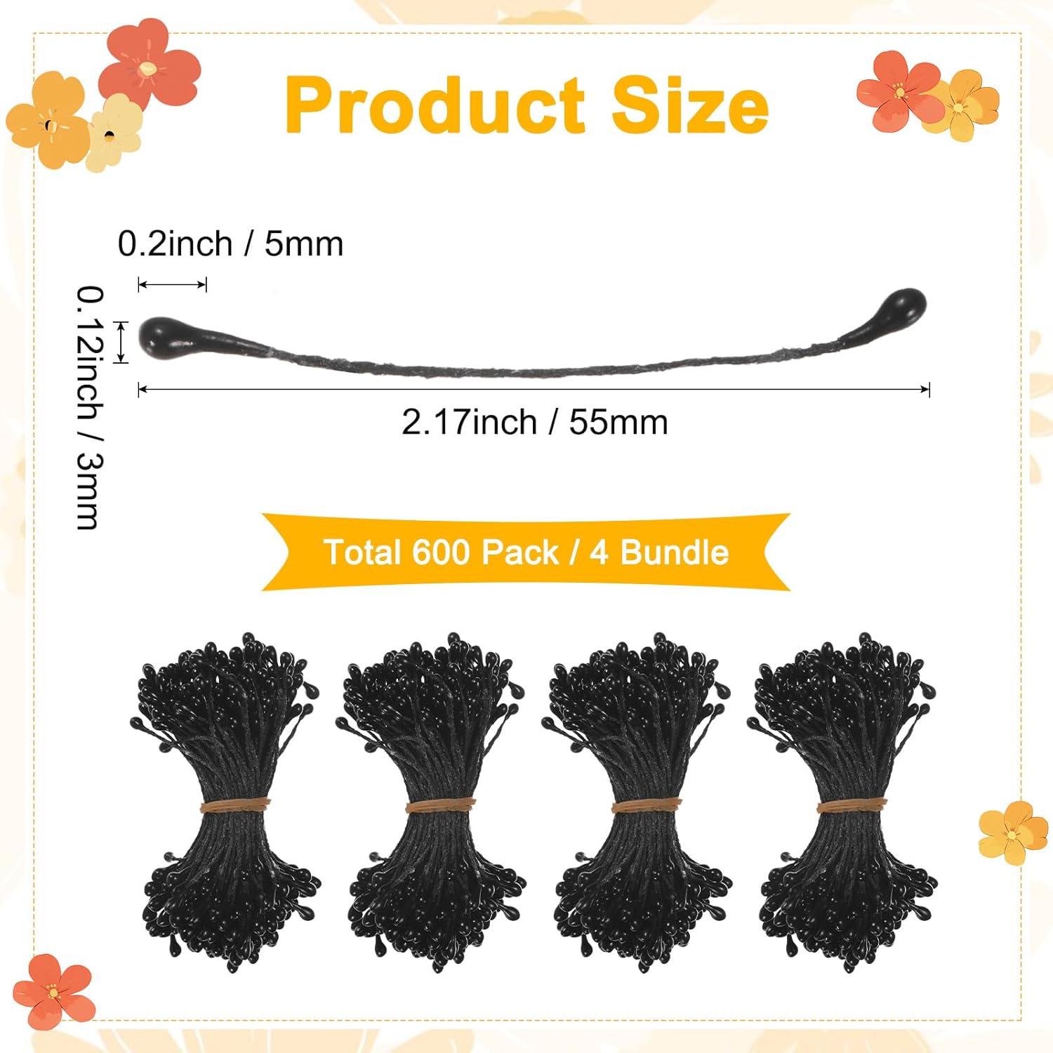 - [Size & Package] - It contains 600 mini double-headed stamens (each 55 mm/ 2.17 inch long and the fake flower head is 5 x 3 mm / 0.2 x 0.12 inch (L x W)), 4 Bundle, the fine size of the flower core better presents the natural layering of the flower
