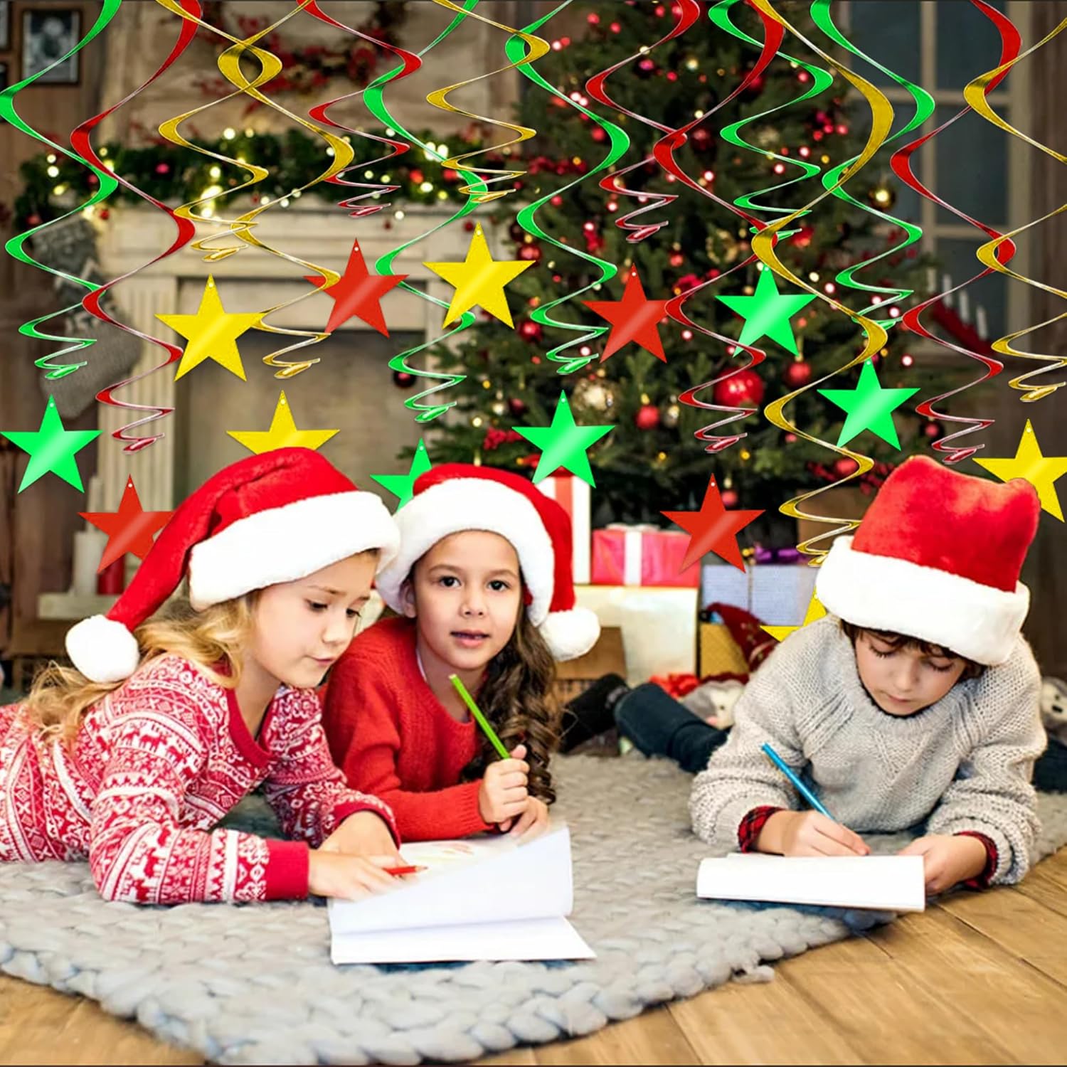 - 【Package include】A total of 15 pcs hanging swirl decorations, including 15 double swirls and 15 swirls with PVC star. There are 15 strings in total, each of which is connected with a double swirls and a PVC star. Flexible swirls, hanging length can extend to approx 36"/91cm long.