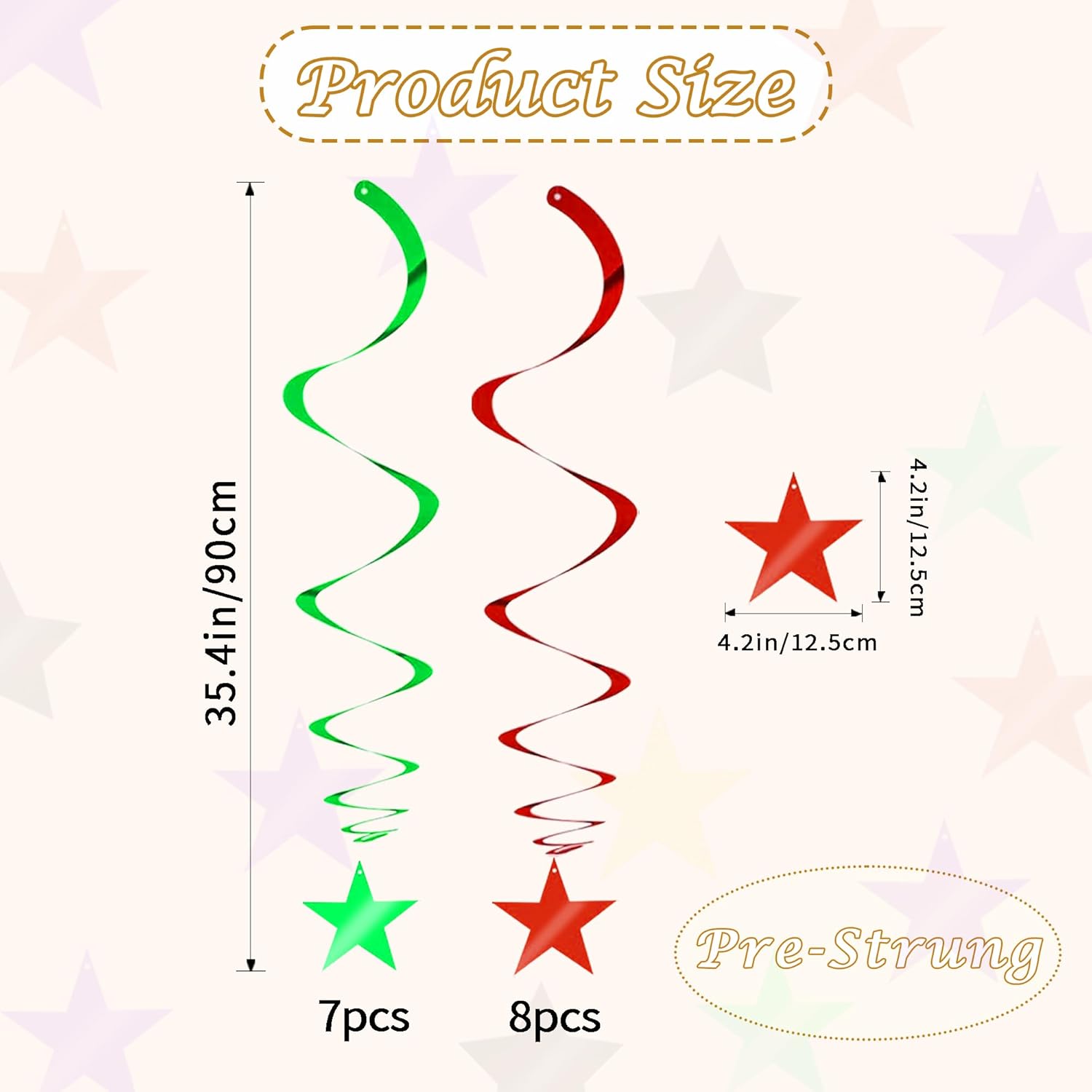 BEISHIDA Red Green Star Hanging Swirl Decorations, Birthday Hanging Party Supplies for Christmas Wedding Baby Shower Birthday Decorations,Pack of 15