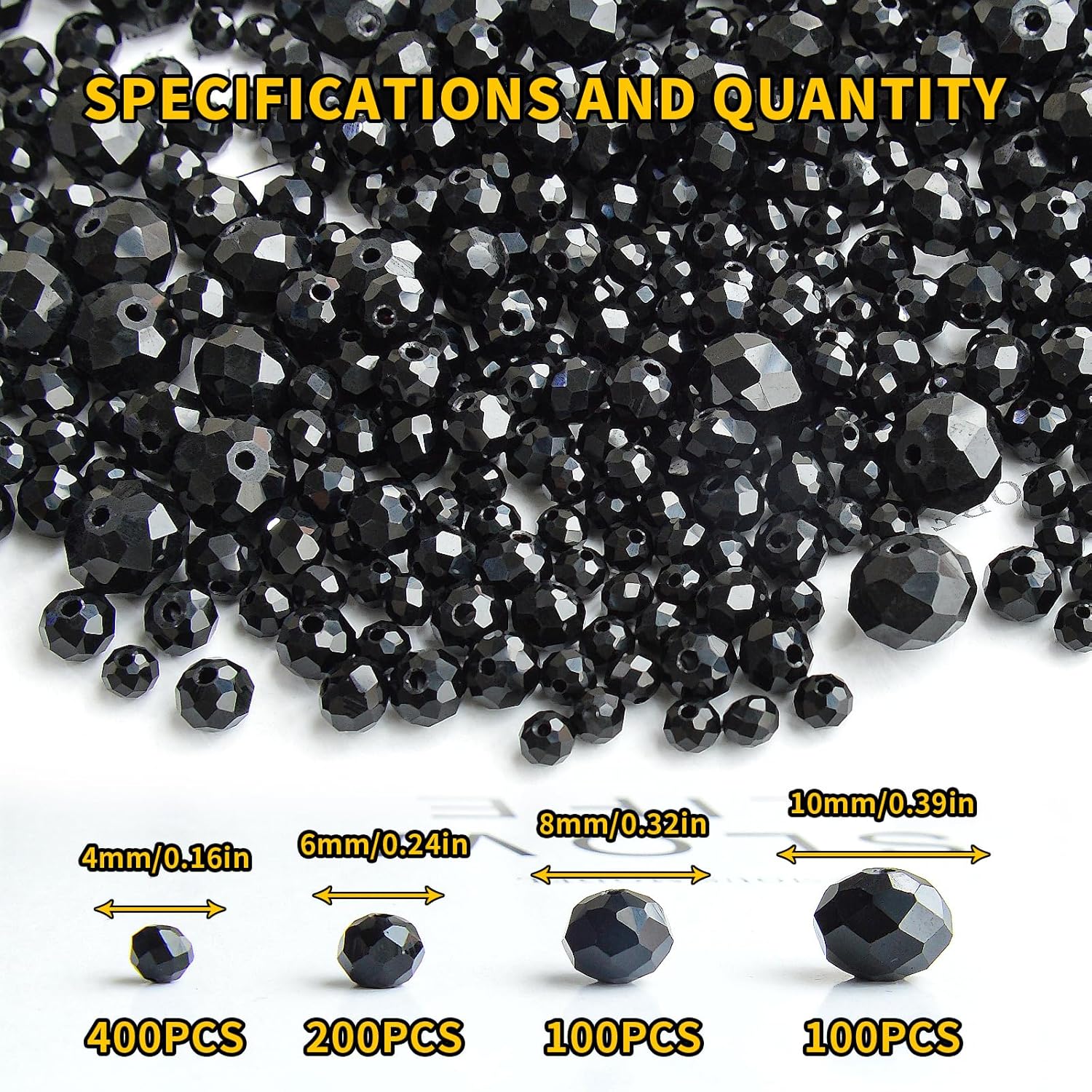800Pcs 4/6/8/10mm Round Crystal Glass Beads for DIY Jewelry, Ideal for Bracelets, Necklaces, Pendants, and Handmade Craft Projects(Black)