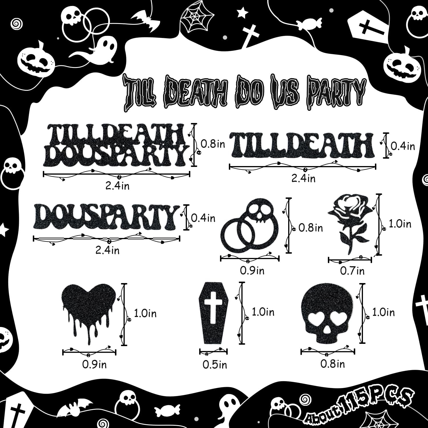 - TILL DEATH DO US PARTY DECORATIONS: A total of 115pcs in each package, plenty of pieces to make a whole photo op area, perfect for a photo backdrop for your gothic bachelorette party