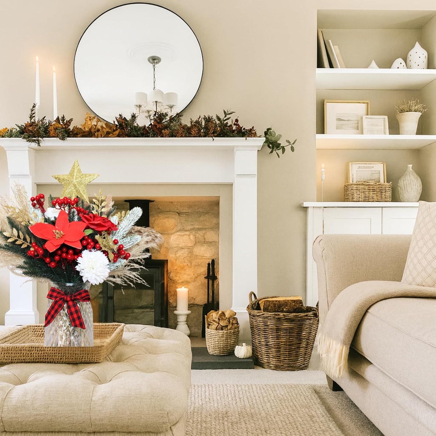 - Elegant winter Centerpiece - these Christmas flower arrangements with vase, with red berry and pine centerpieces for tables, are perfect as christmas centerpiece table decorations or winter centerpieces for table. Ideal for dining table centerpiece decor or christmas coffee table centerpiece, they enhance living room christmas decor and beyond with a festive touch, make christmas hosting essentials.