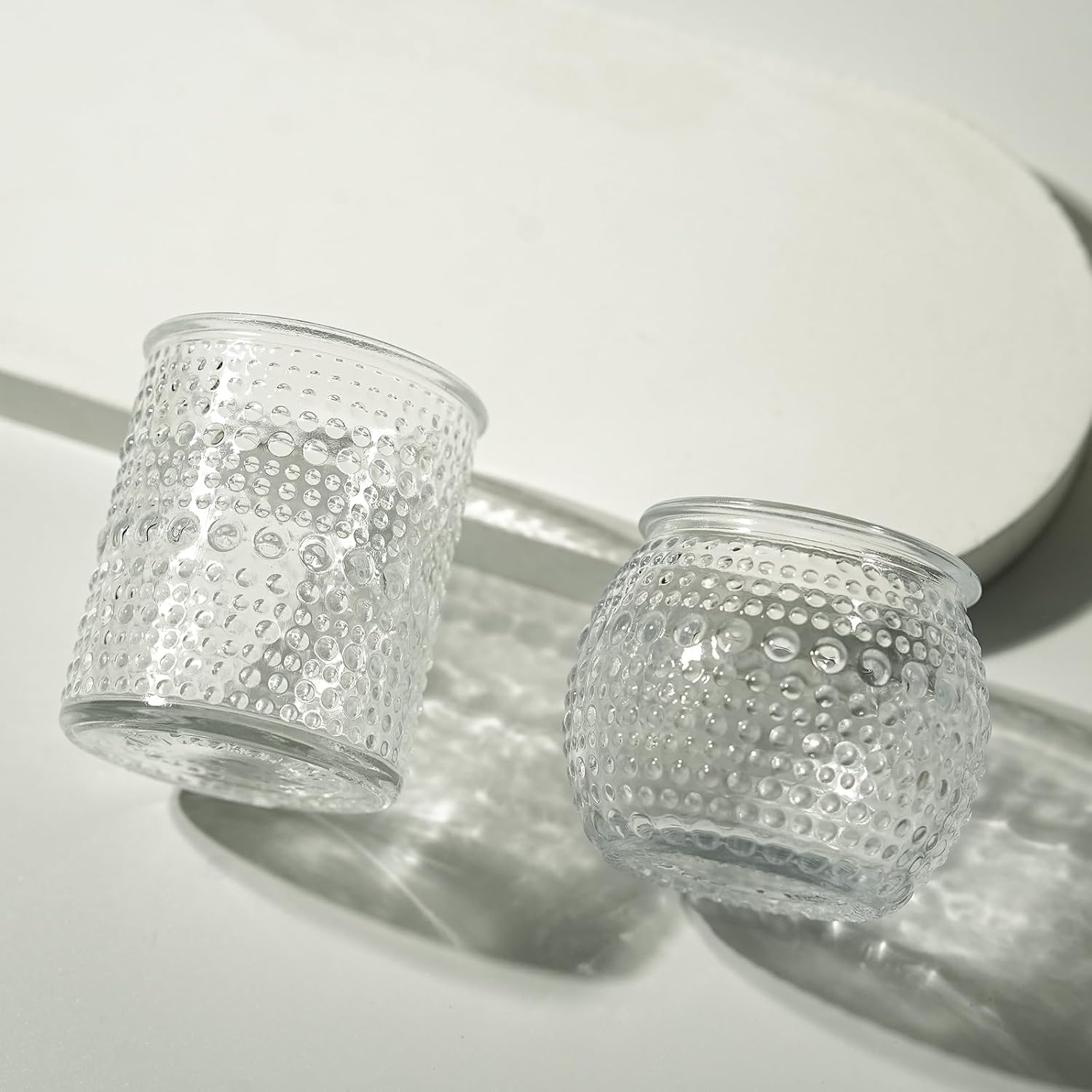 - Dazzling Dot Tea Lights Candle Holder: Each tea lights candle holder features delicate dot embellishments that catch and refract light, casting mesmerizing patterns when lit. The transparent glass enhances this effect, turning ordinary candles into a stunning light display
