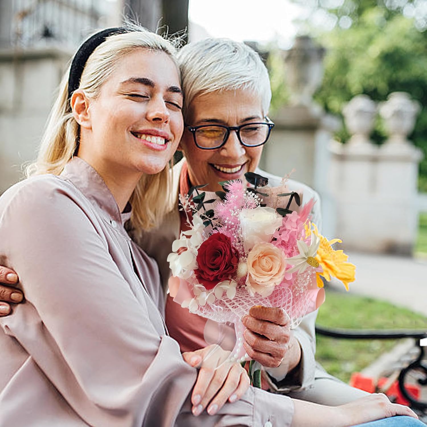 - Exquisite gift box packaging: The preserved flowers bouquet comes with a premium transparent gift box and a blank gift card. Beautifully presented for giving and don't need to extra wrapping required. Ideal for home décor or display.