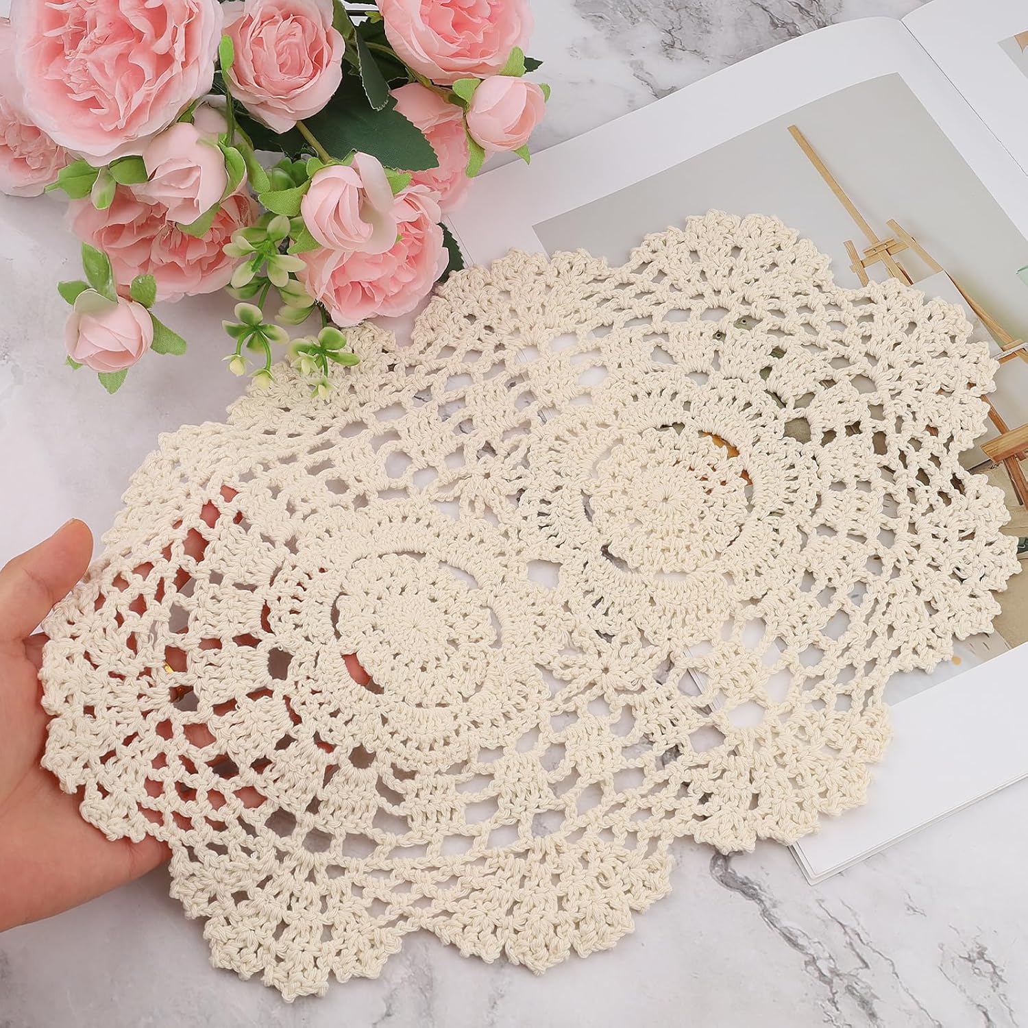 - 2-Pack Handmade Crochet Doilies - It contains 2pcs crochet doilies place mats, with 10" x 14"(L*W) in total size. Each one is handcrafted, making each individual one unique in its own way.