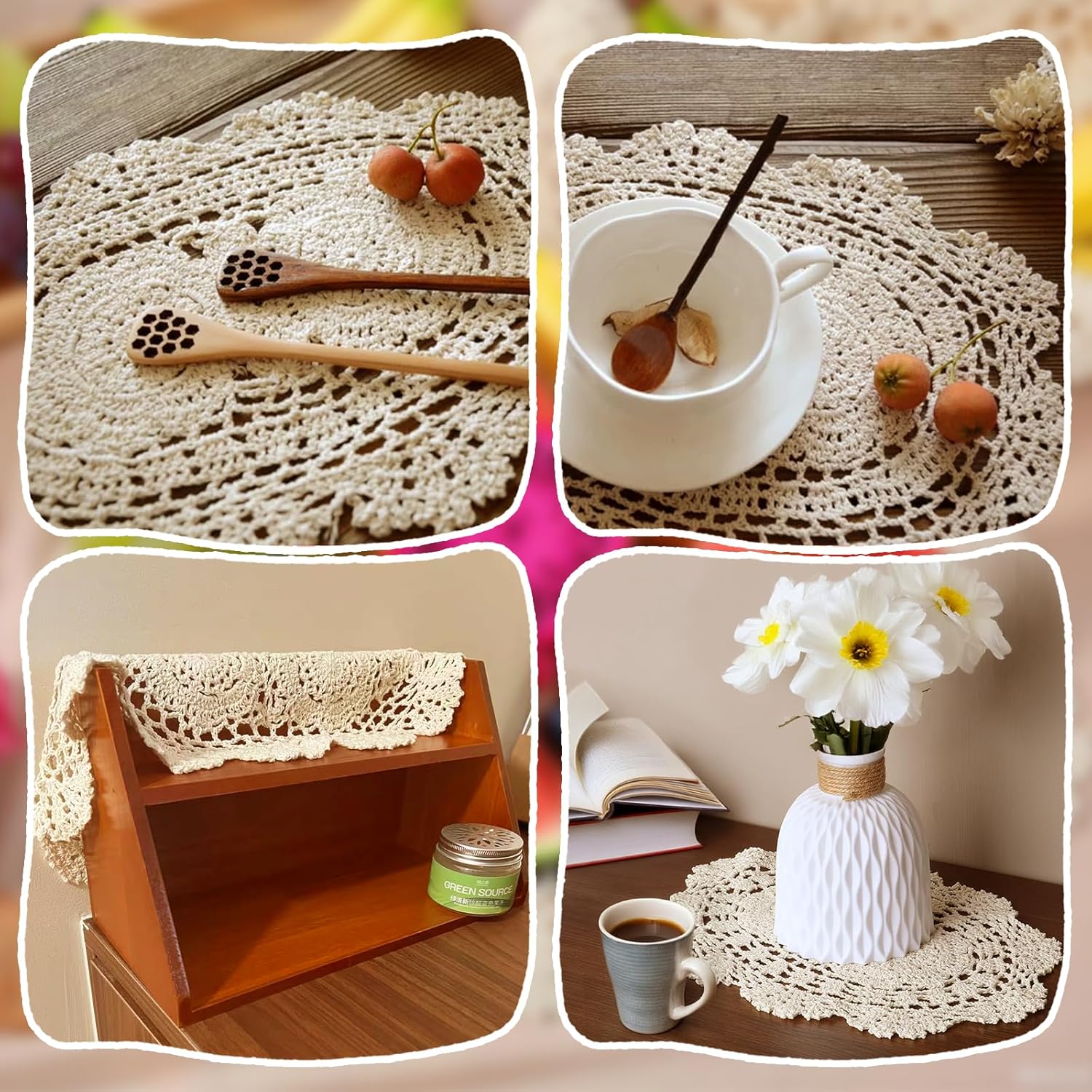 - Vintage Rustic Style Doilies - These lace doilies for tables have a retro pastoral style that adds a pastoral nostalgic charm to your table, and these hand-crocheted lace lilies can be shared with friends, family or neighbors to express your care and gratitude, and are elegant gifts for birthdays, Christmas, Thanksgiving, warming parties and more