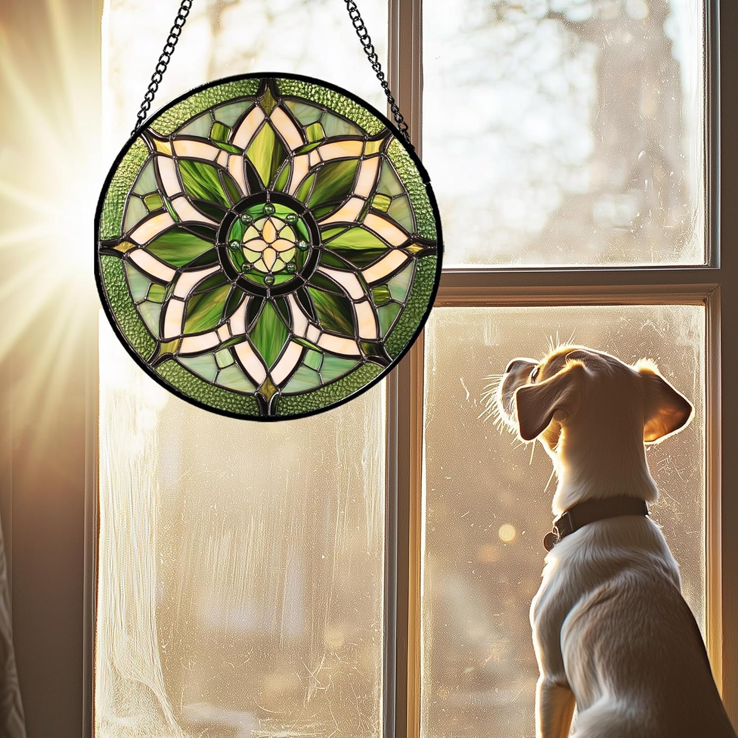 Stained Glass Window Hanging - White Green Boho Flower Suncatcher for Doors Window Home Sun Catchers Decor Christmas Mother's Day Birthday Gifts for Teacher Women Men Mom Nana 9.8 in